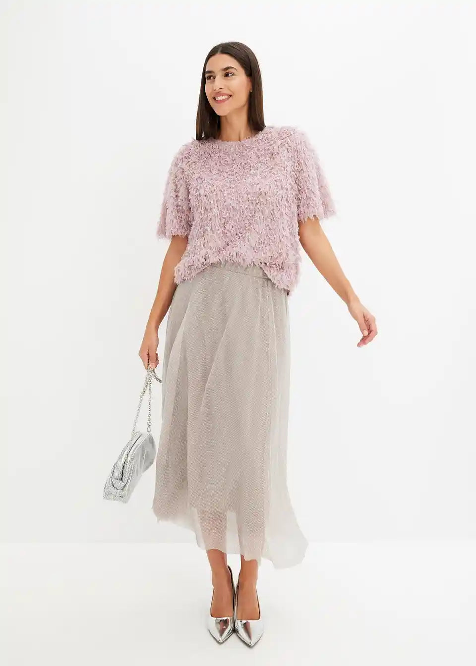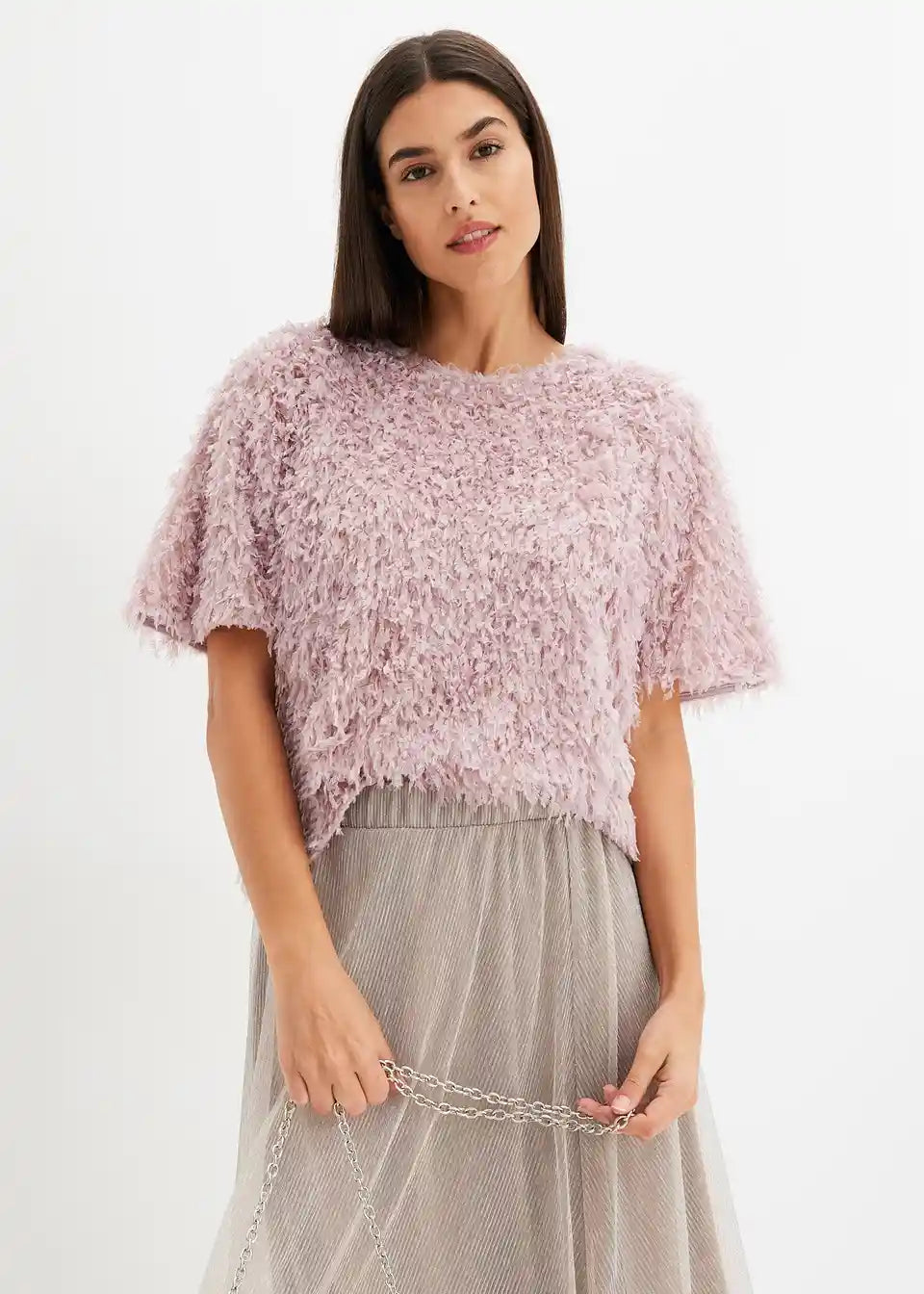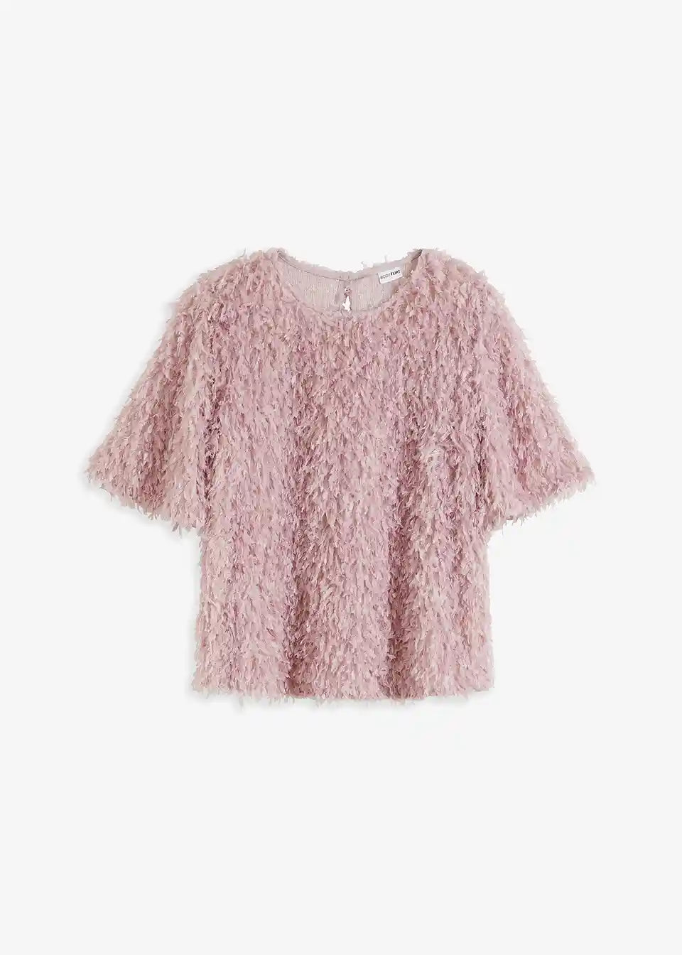 moderna košulja-bluza s posebnim materijalom i izrezom okruglog oblika