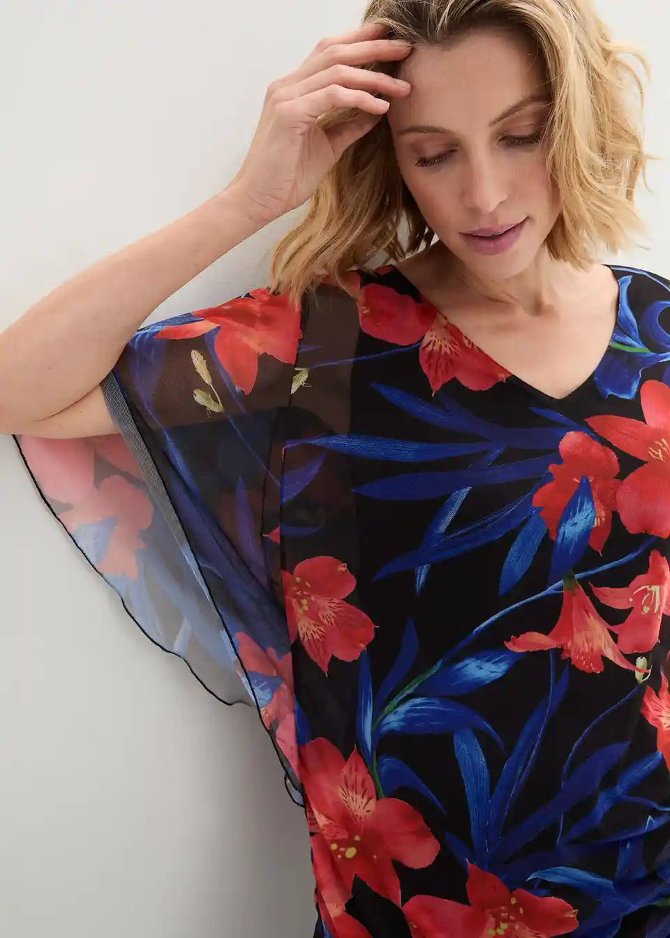 Košulja-Tunika od mrežastog materijala s osvježavajućim cvjetnim uzorkom