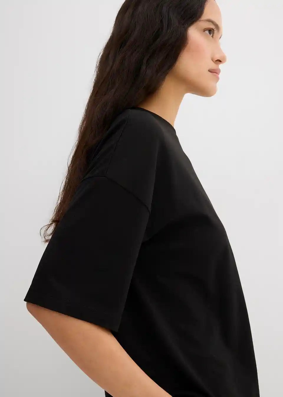 Majica s ležernim krojem s rebrastim okruglim izrezom i produženim kratkim rukavima