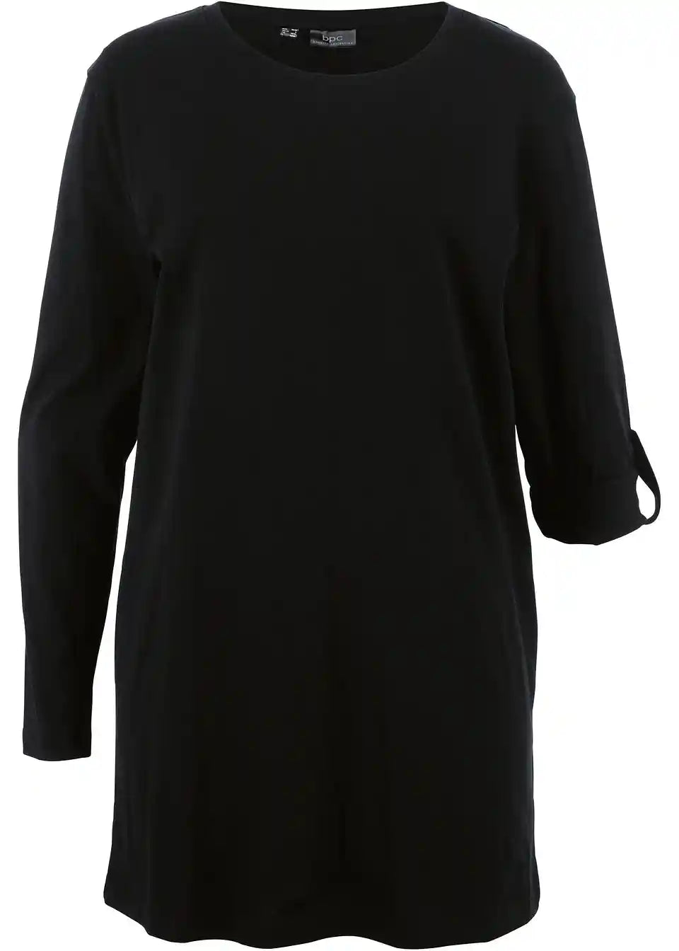 Široka dugorukavna longshirt majica s decentnim okruglim izrezom, s dugim rukavima s funkcijom podvrnutih rukava i ležernim krojem.