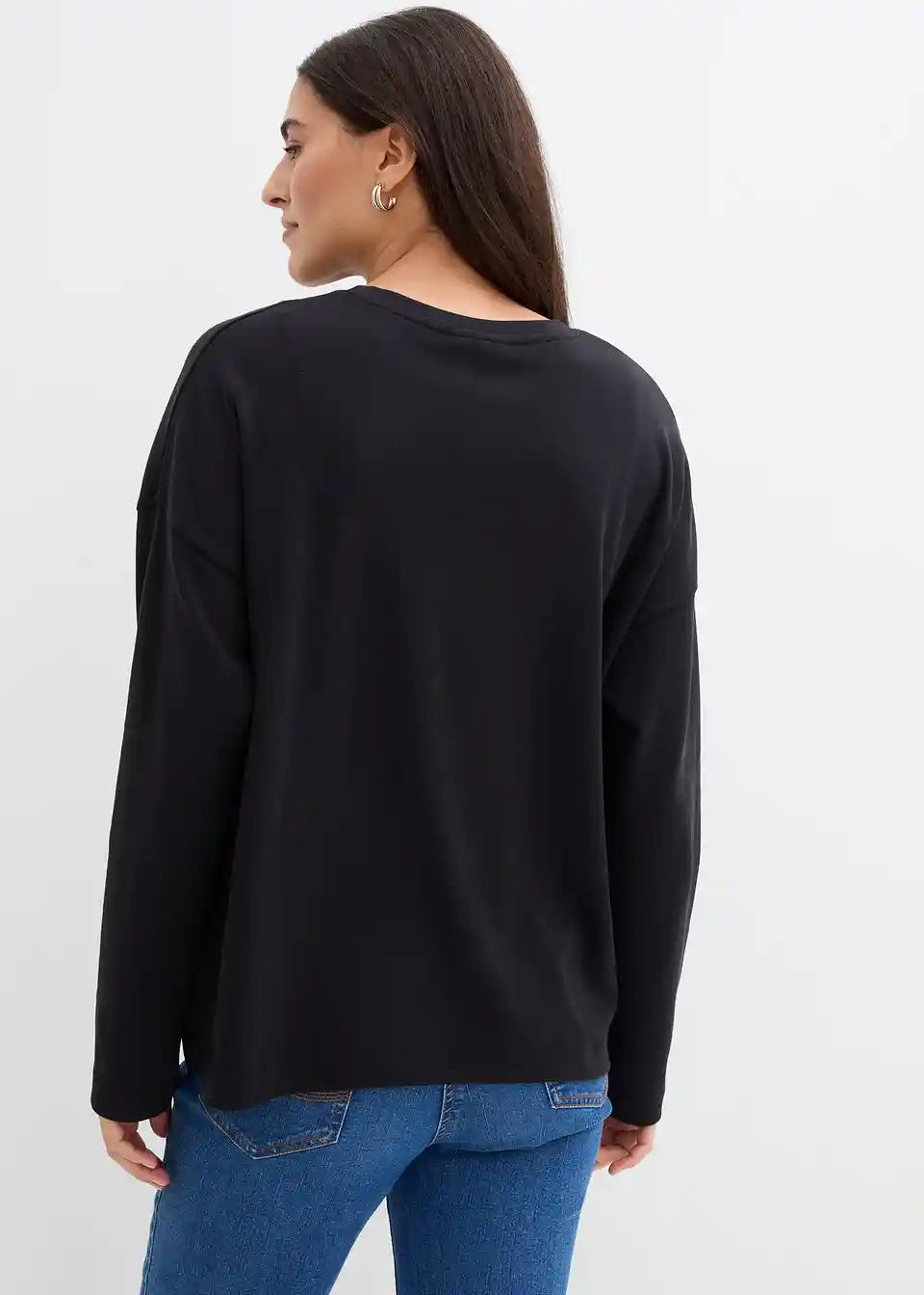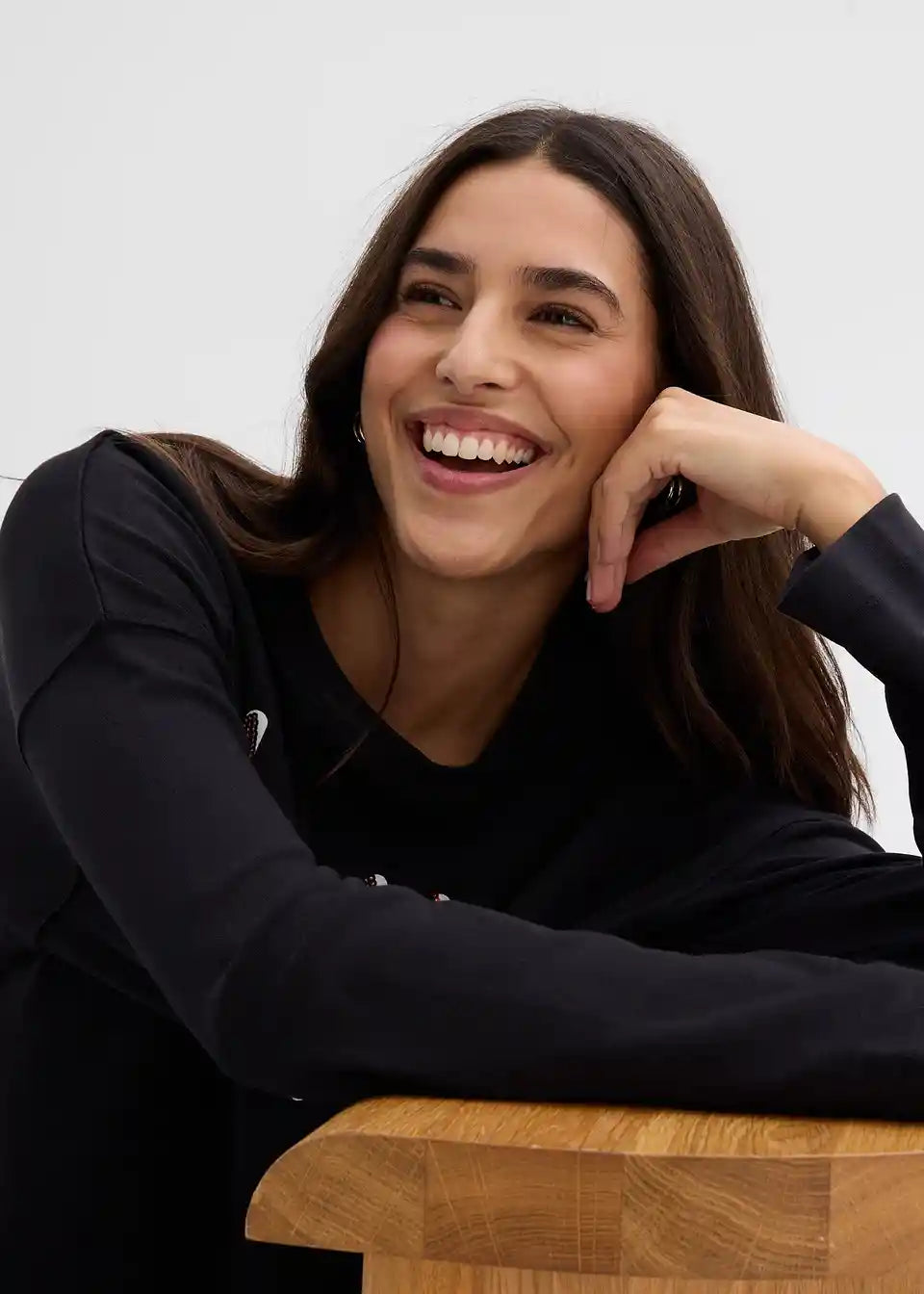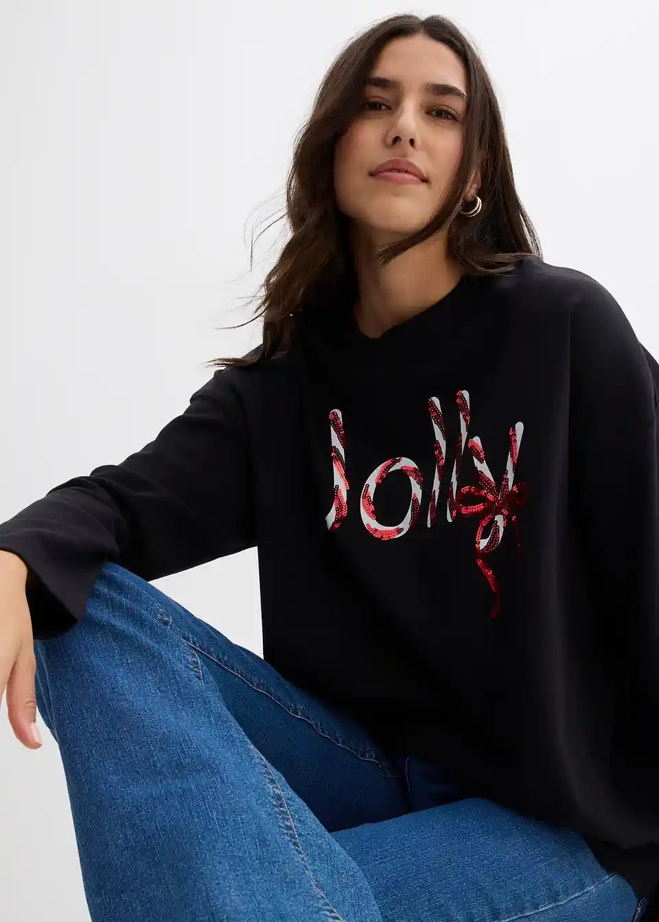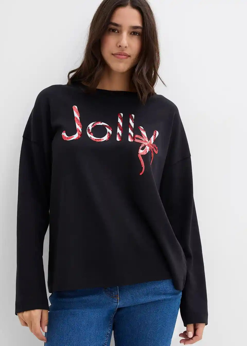 Božićni pamučni longsleeve s okruglim izrezom i natpisom od šljokica