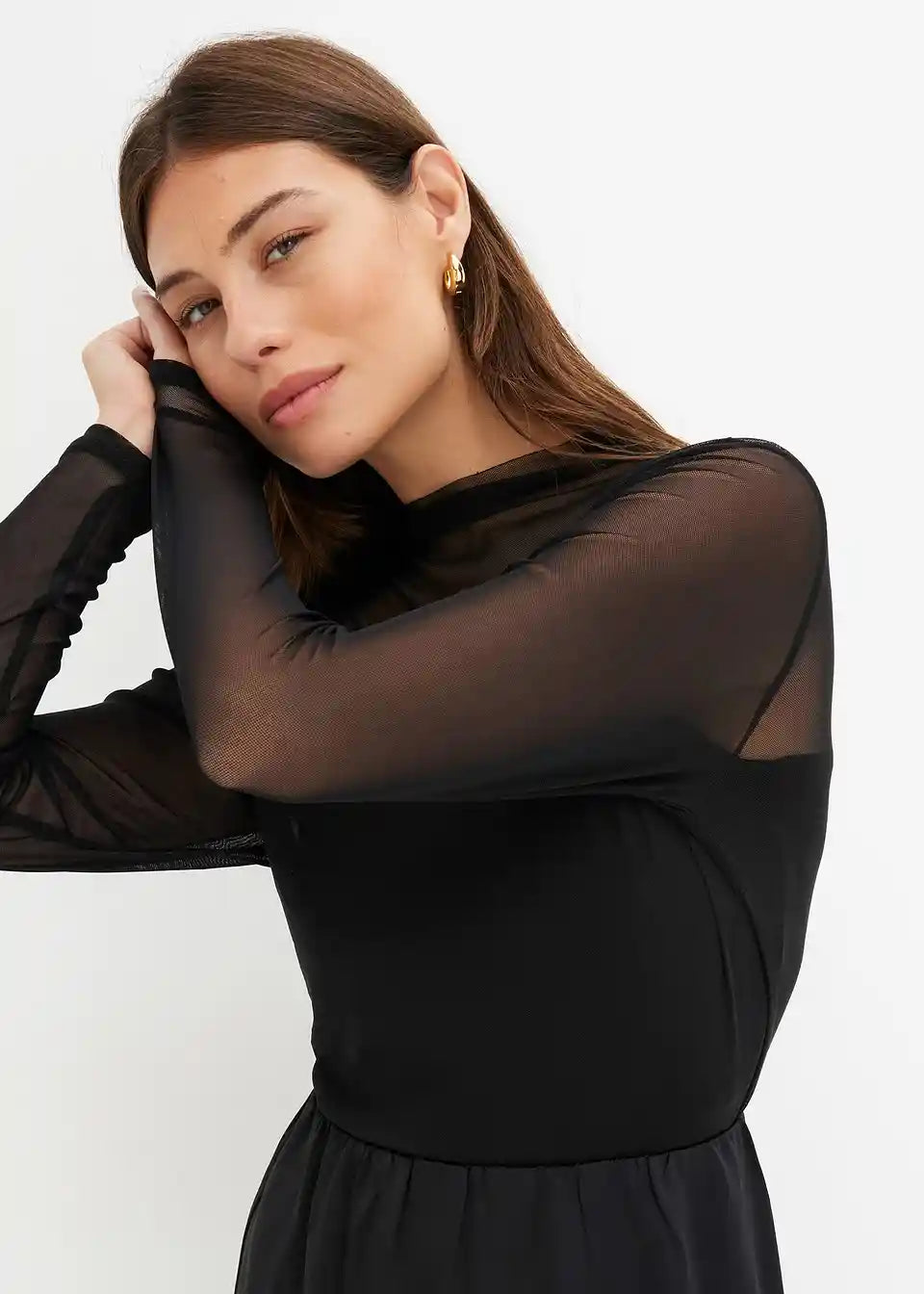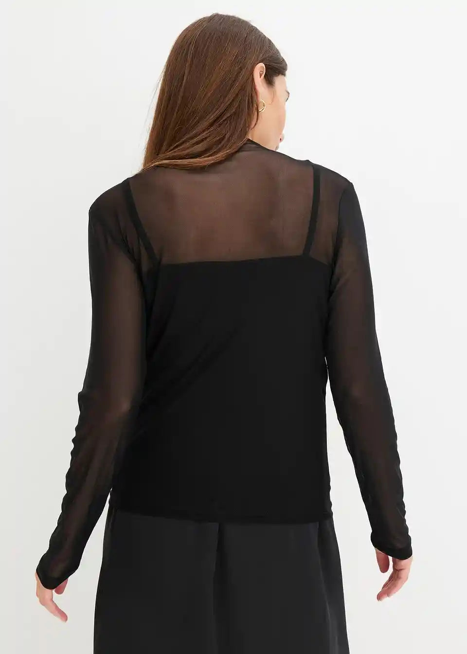 pripijena majica dugih rukava od mrežice s visokim ovratnikom