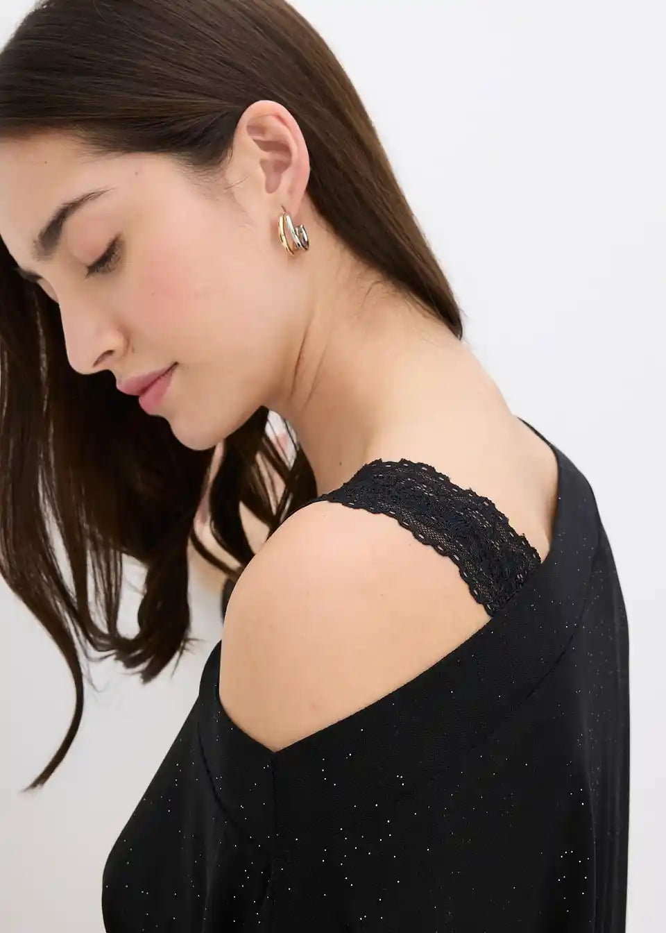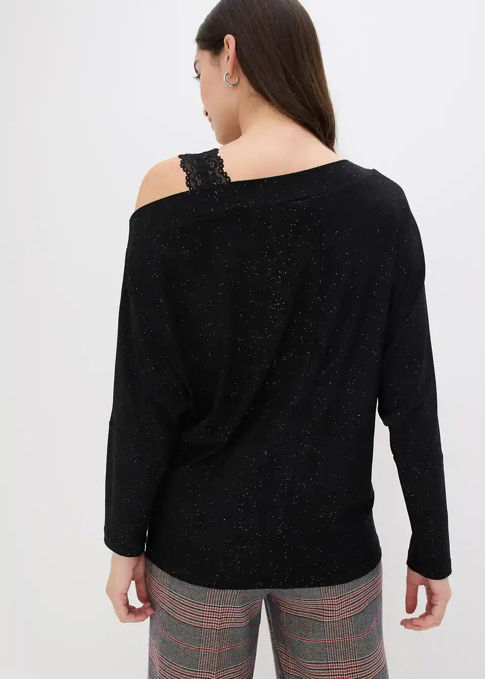 Moderan One-Shoulder-Shirt s detaljima od šljokica i čipke