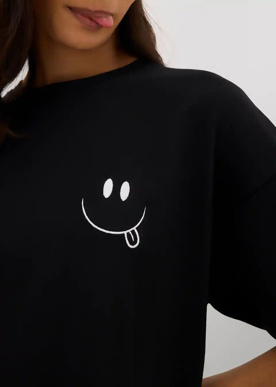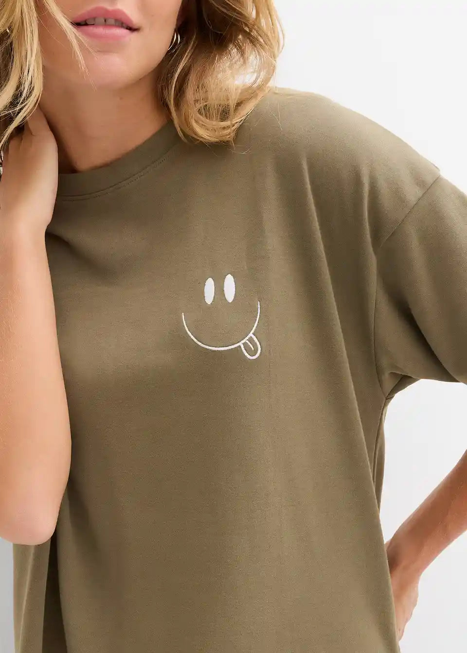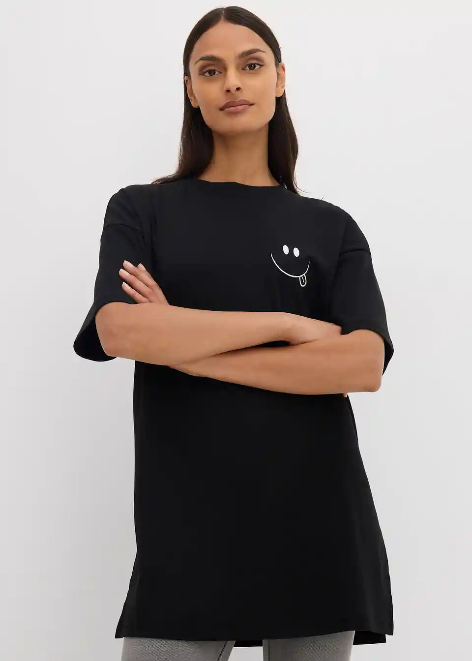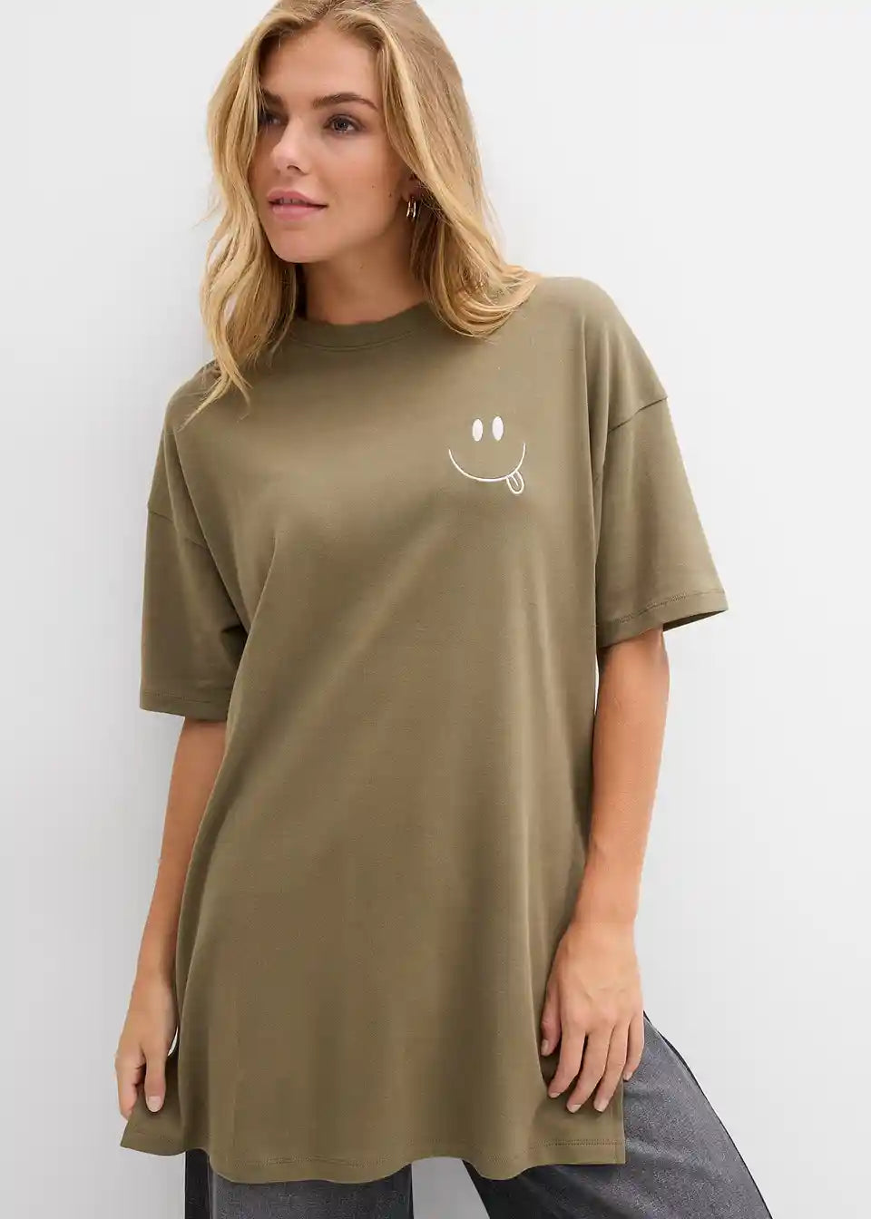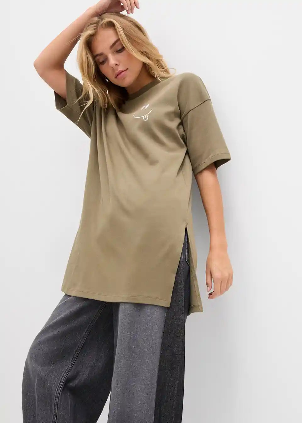 Ležerna duga majica s udobnim bočnim prorezima i vezom