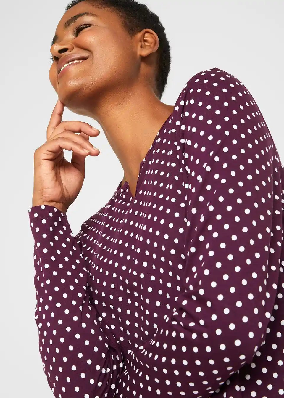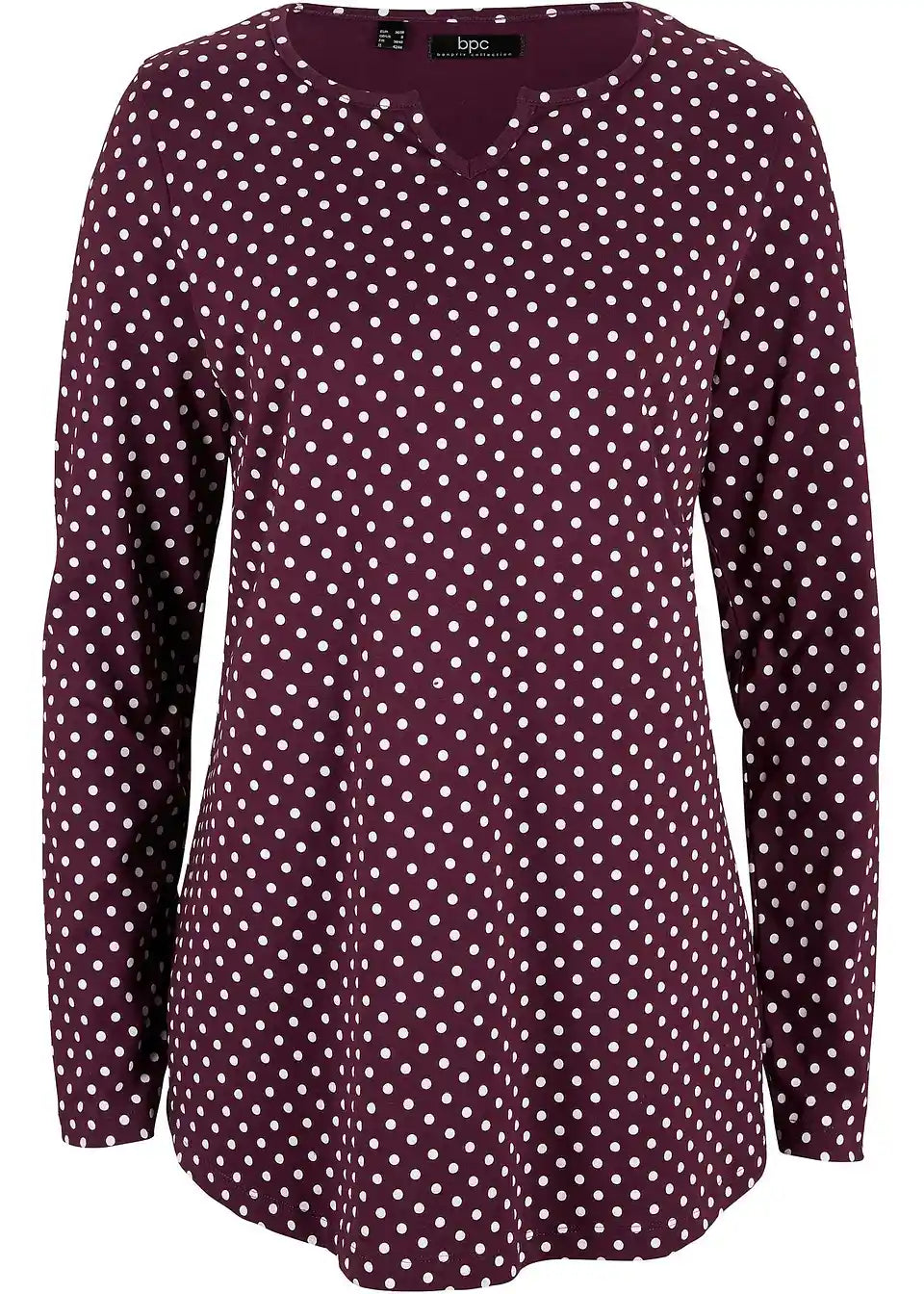 Točkasta pamučna majica s dugim rukavima s prorezima sa strane
