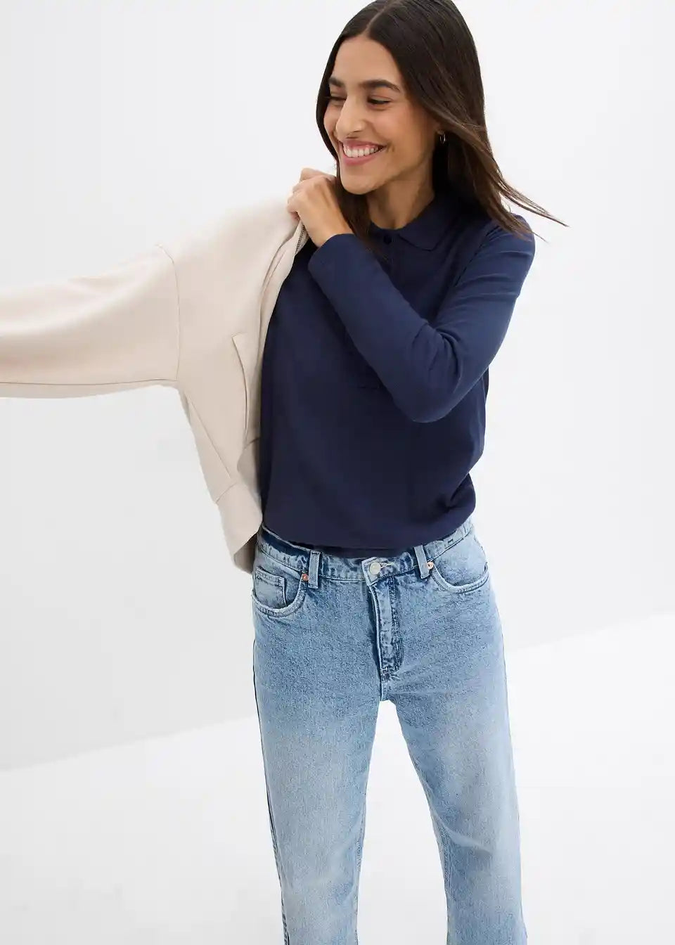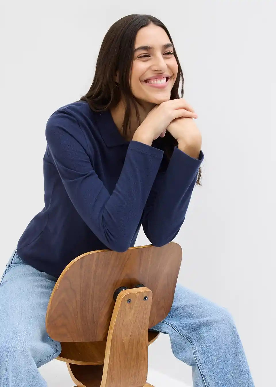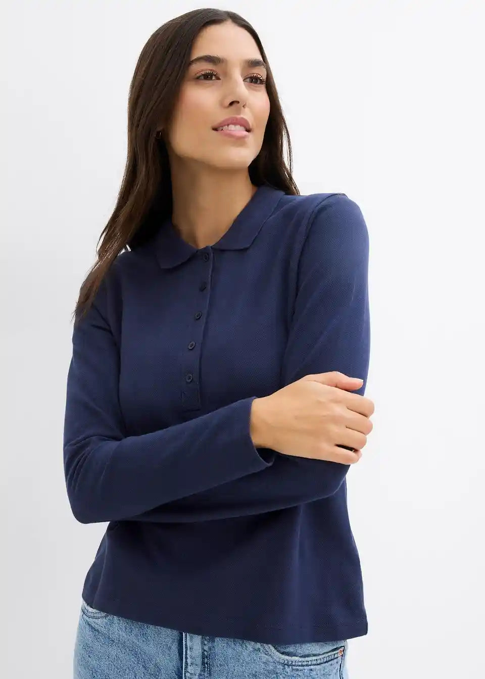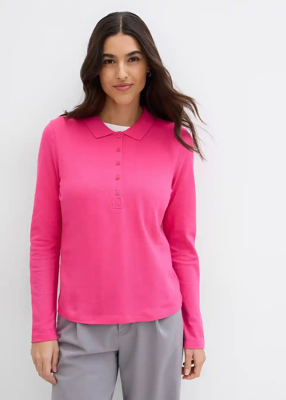 Klasična Piqué-polo majica s kopčanjem na gumbe od organskog pamuka. Duljina u vel. 40/42 cca. 62 cm, periva u perilici rublja.