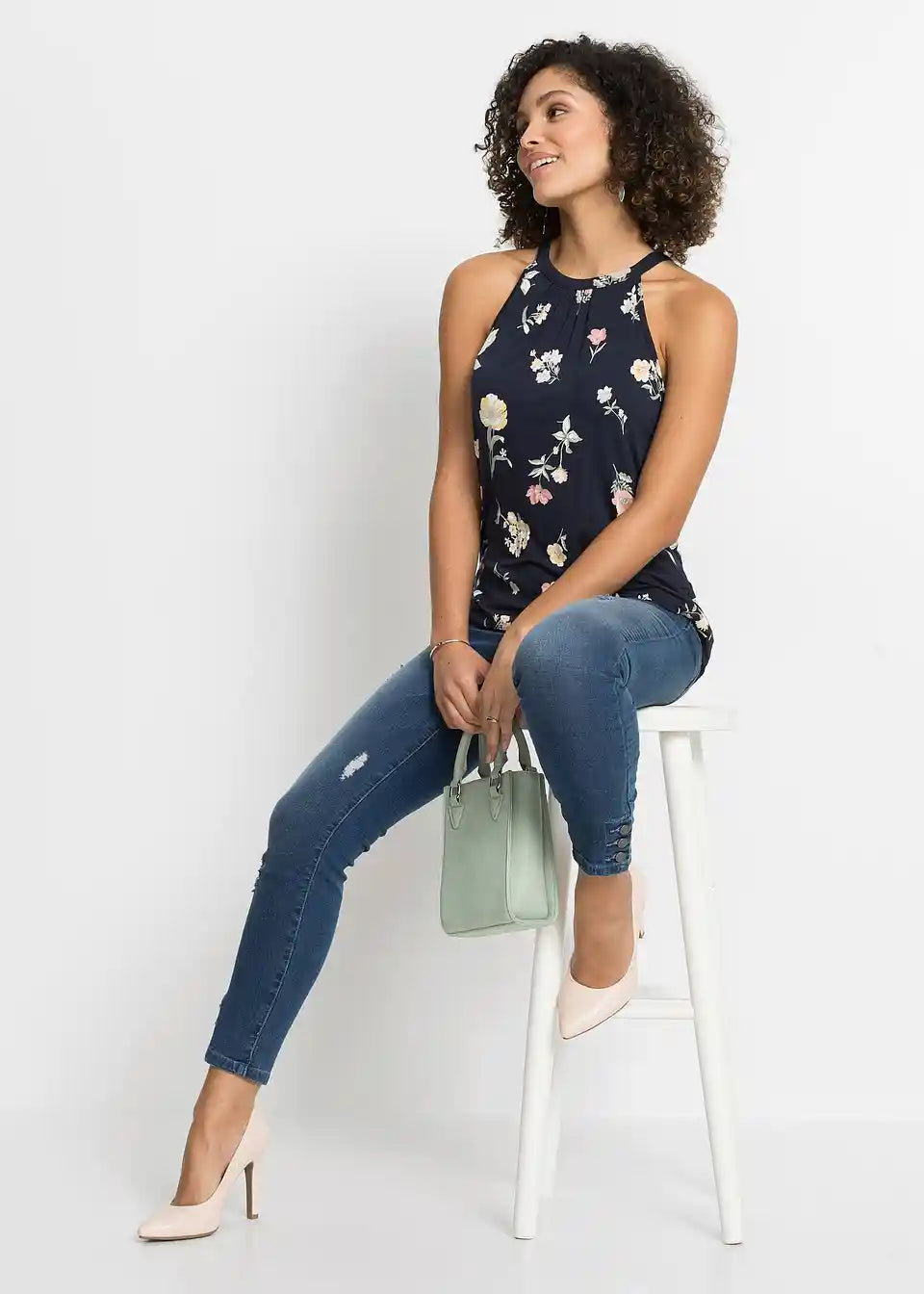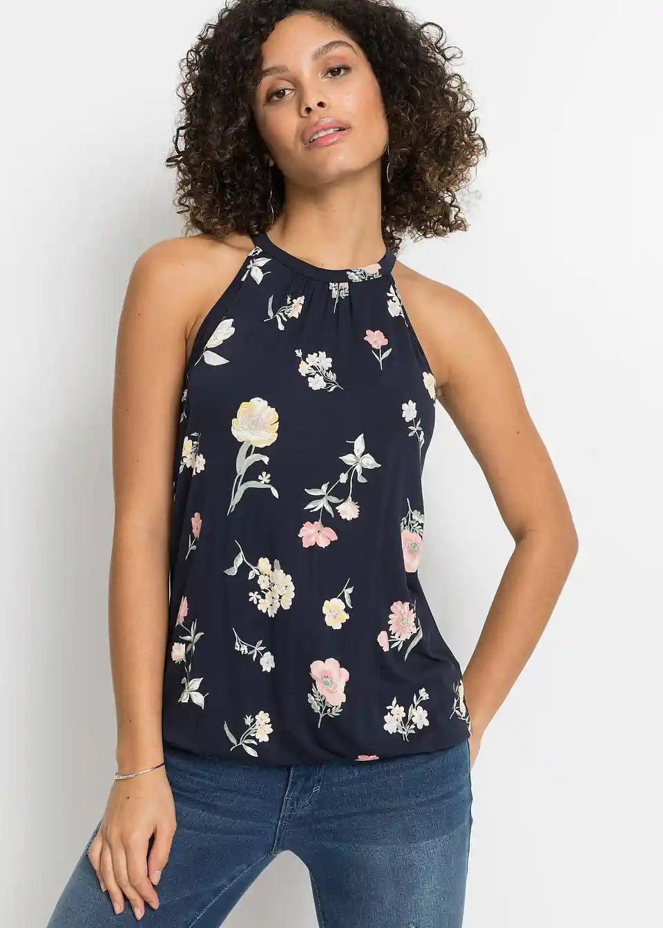 Moderan top sa kopčanjem na gumb na vratu