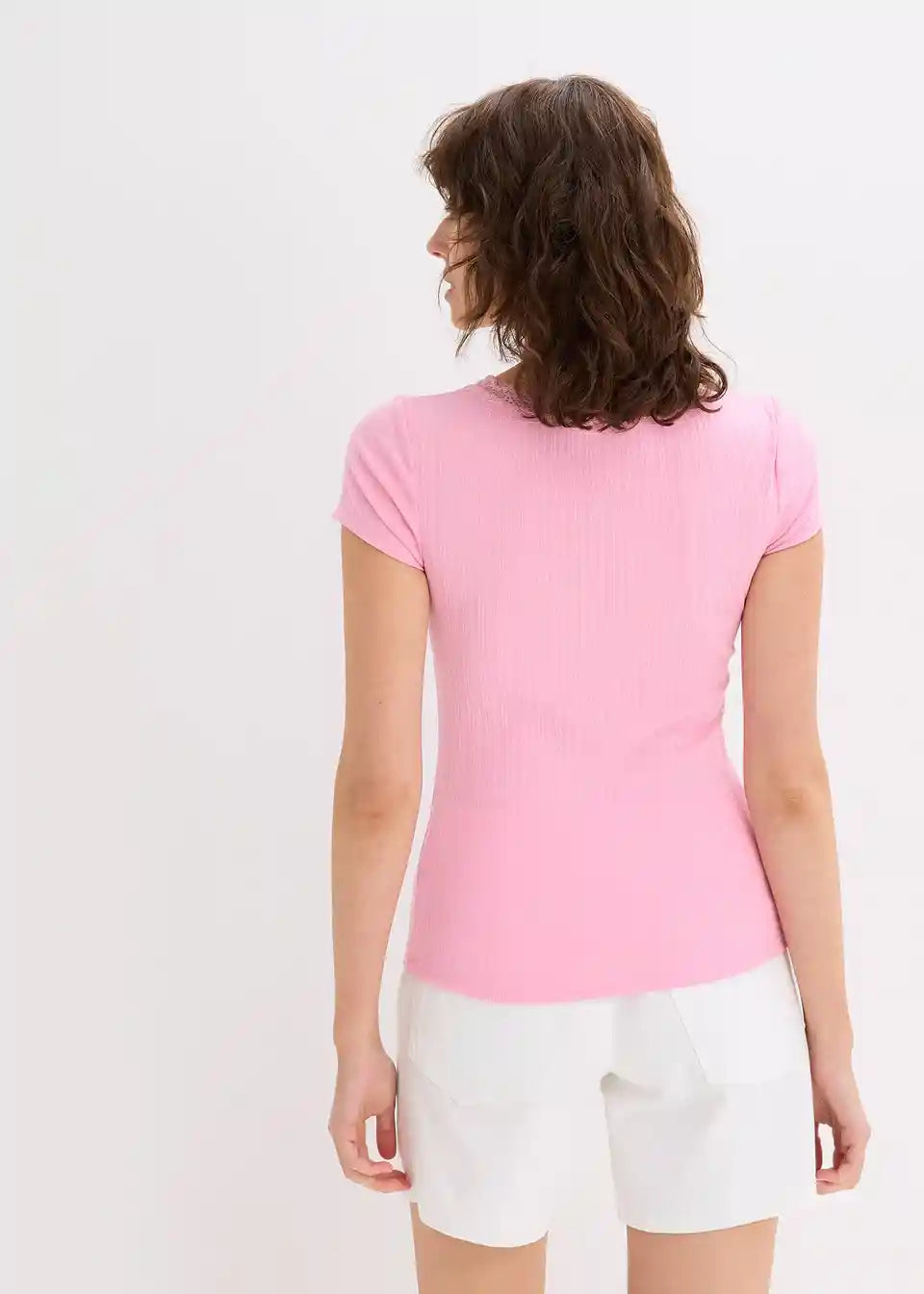 Rebrasta majica s čipkastim detaljem u Slim-Fit kroju