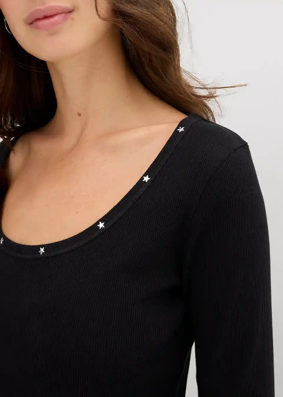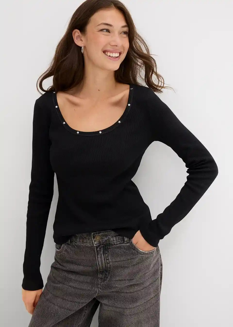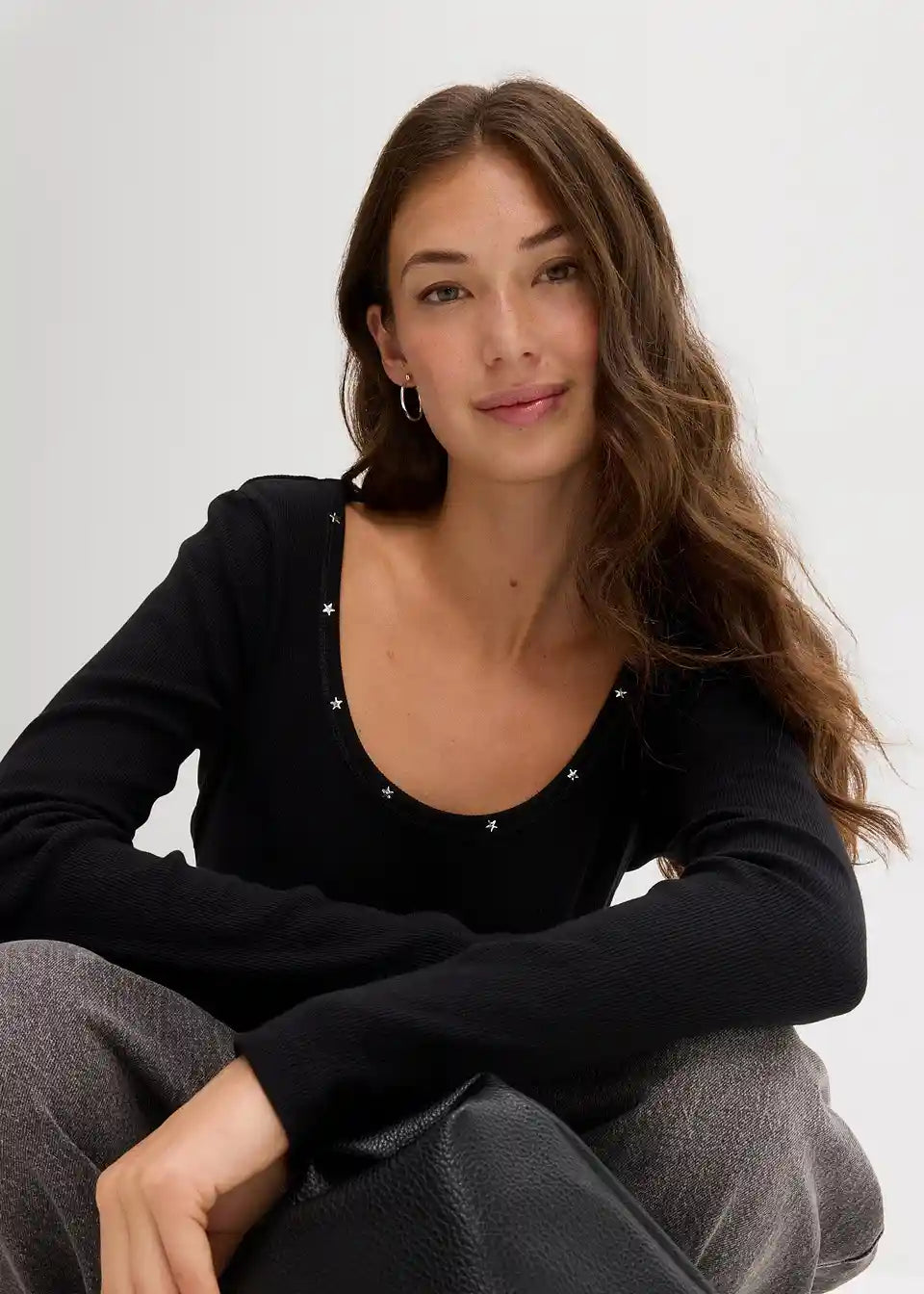 Moderna rebrasta majica s dugim rukavima i nitnama
