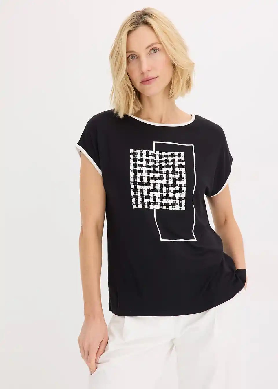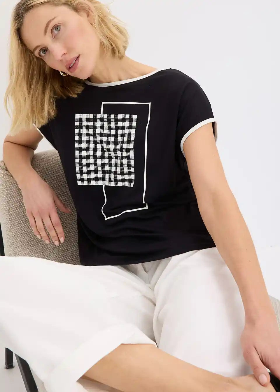 elegantan Shirt s postavljenim printom i kontrastnim obrubom