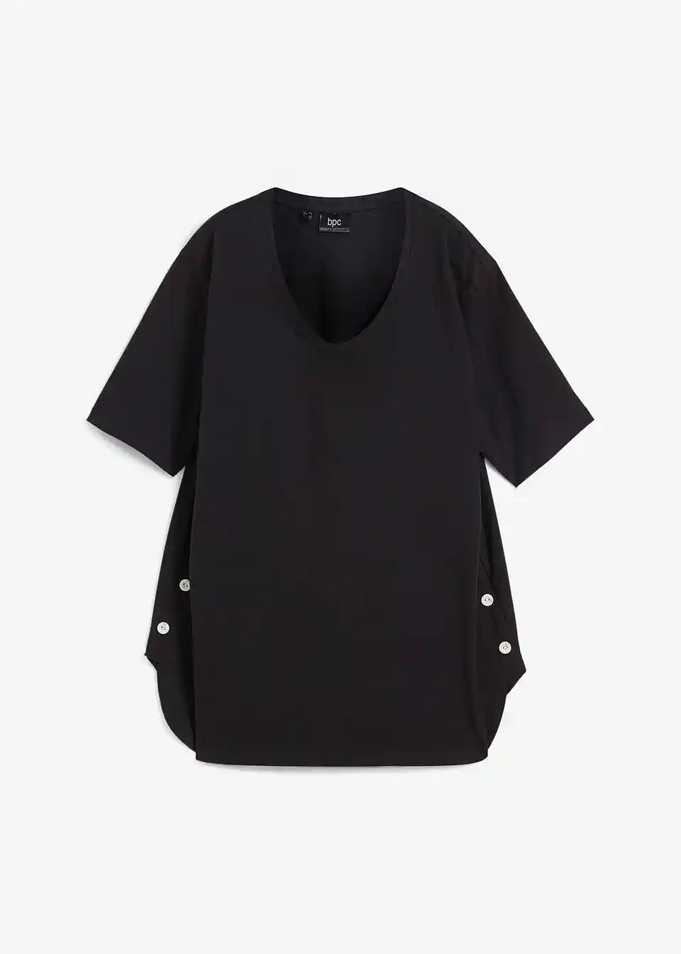 Široka T-shirt majica s detaljem gumba sa strane od organskog pamuka