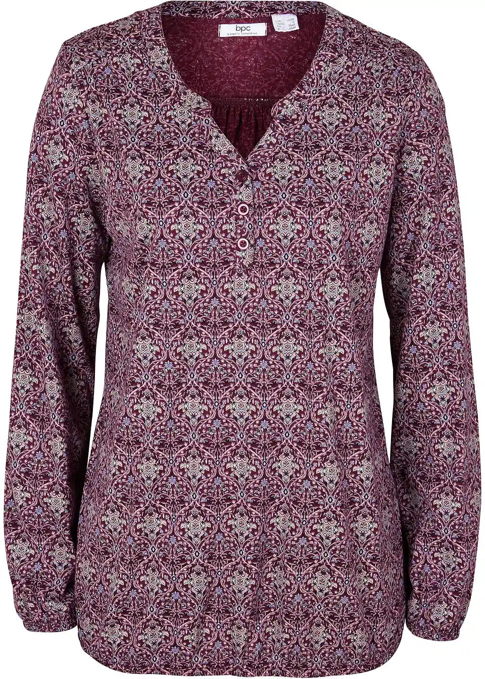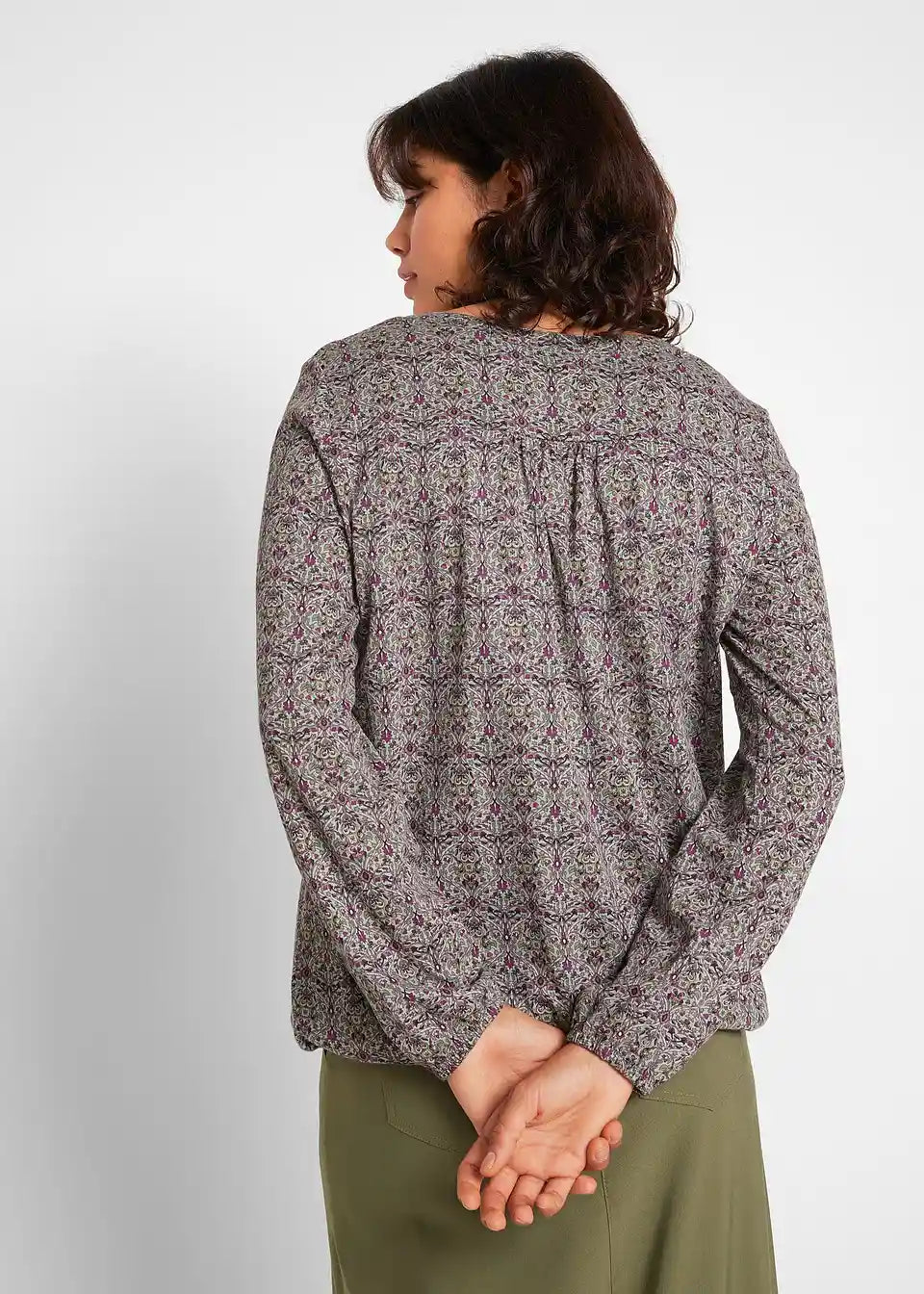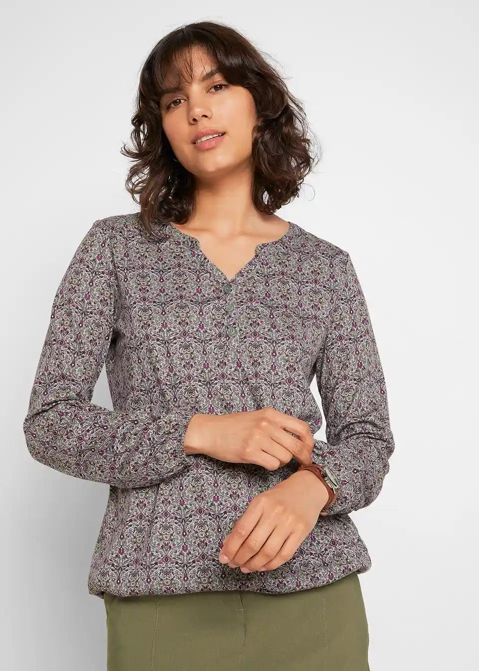 Majica s uzorkom, dugim rukavima i okruglim izrezom s gumbima