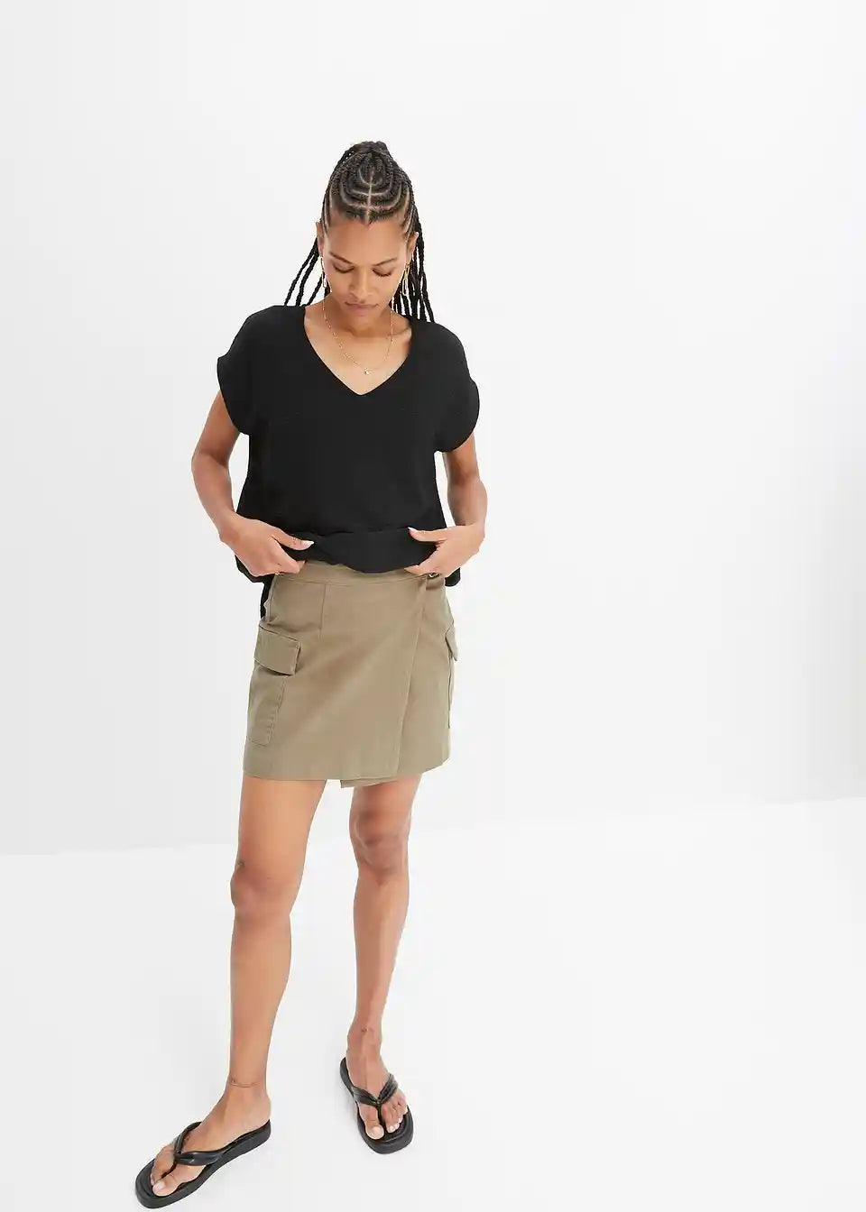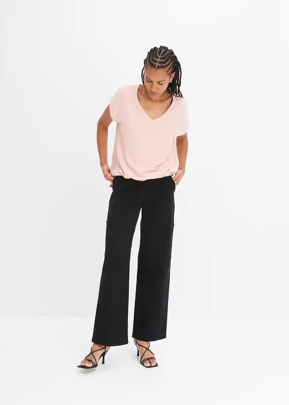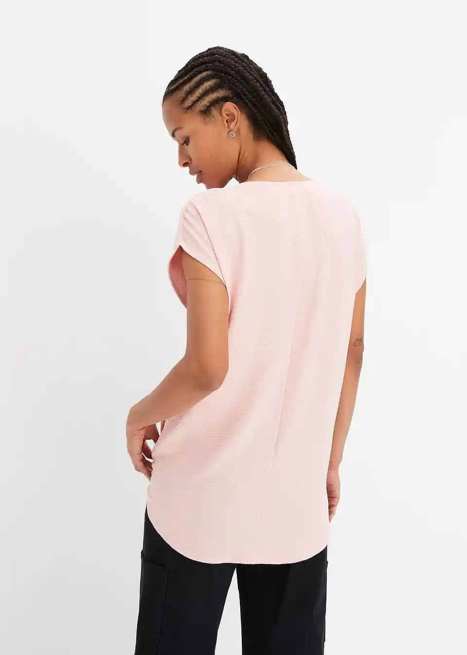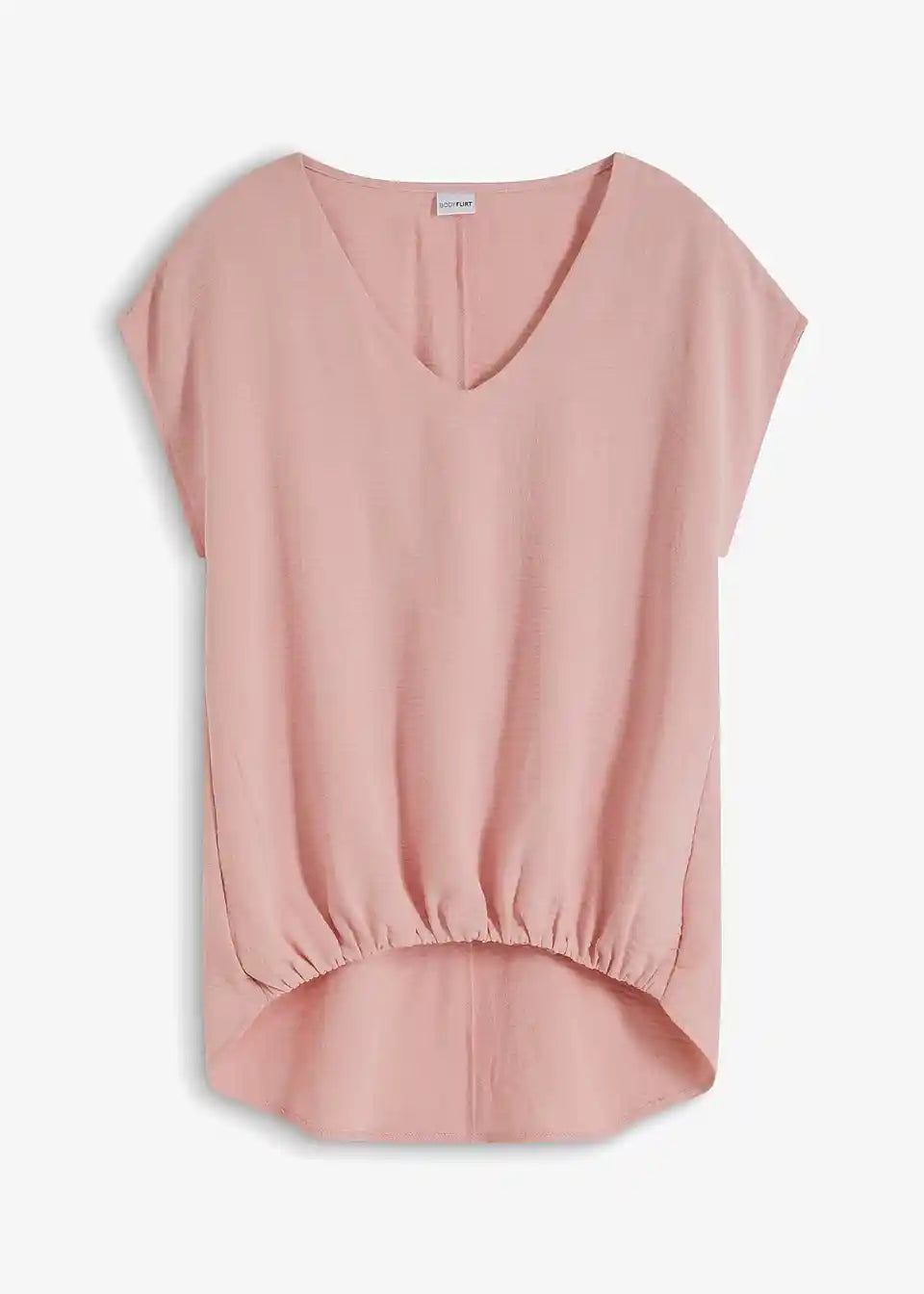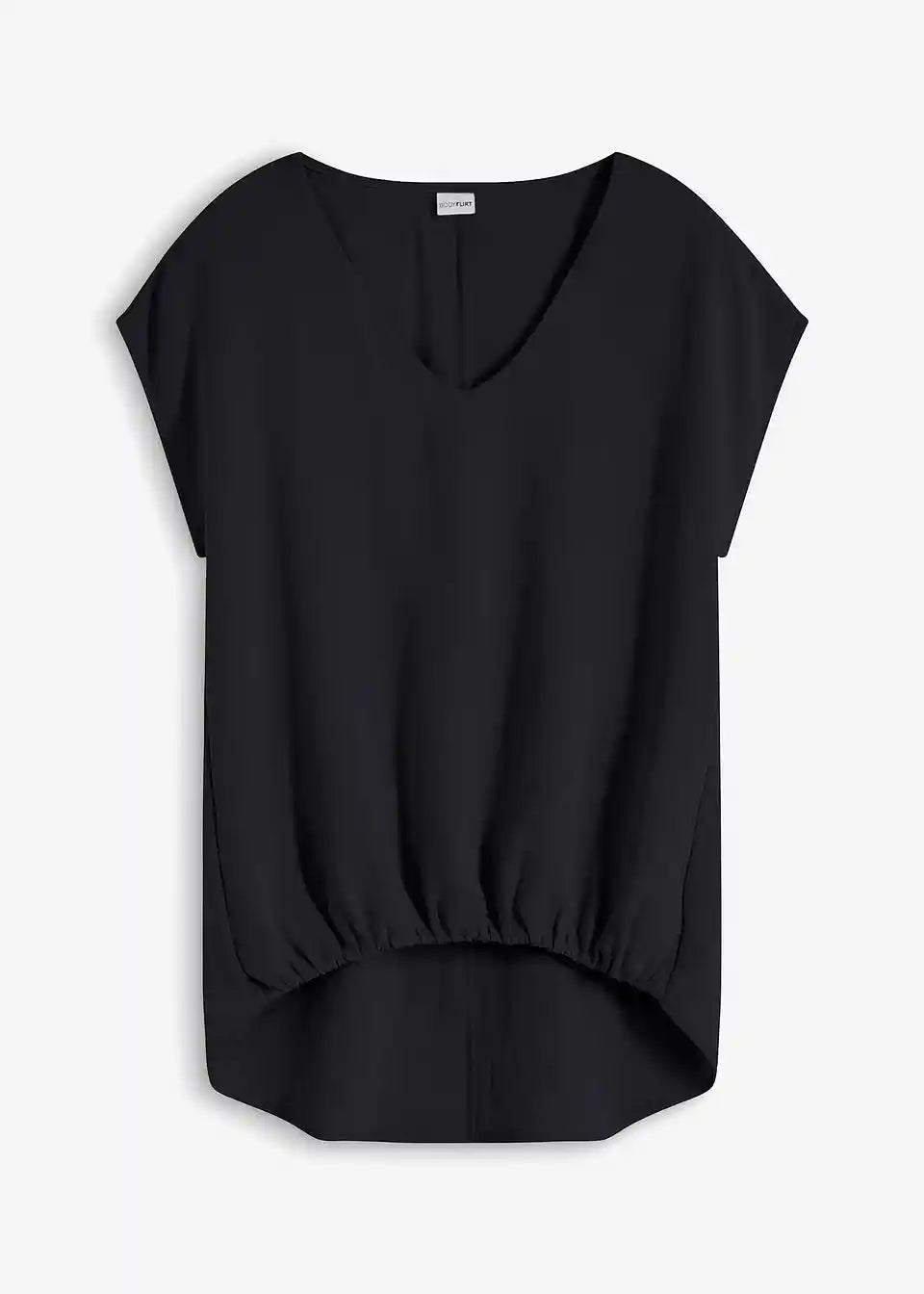 Elegantni top s naborima sprijeda na rubu, straga nešto duži