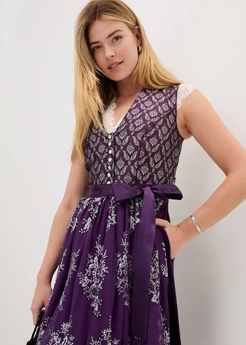 Visokokvalitetni Dirndl od plemenitog Jacquarda s dekorativnim gumbima i lijepim vezom