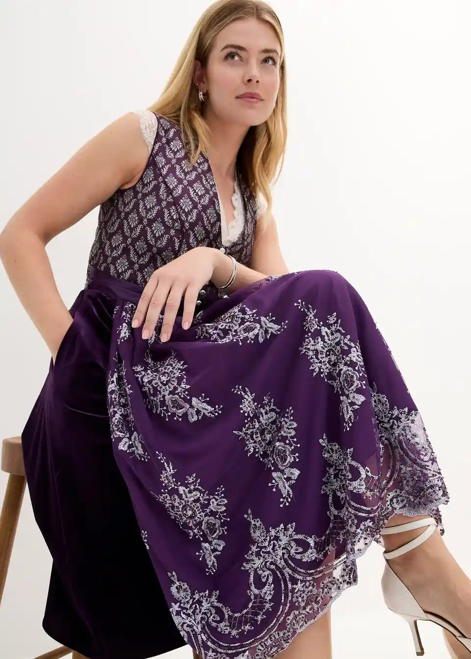 Dirndl sa žakard uzorkom i vezom (2 komada)