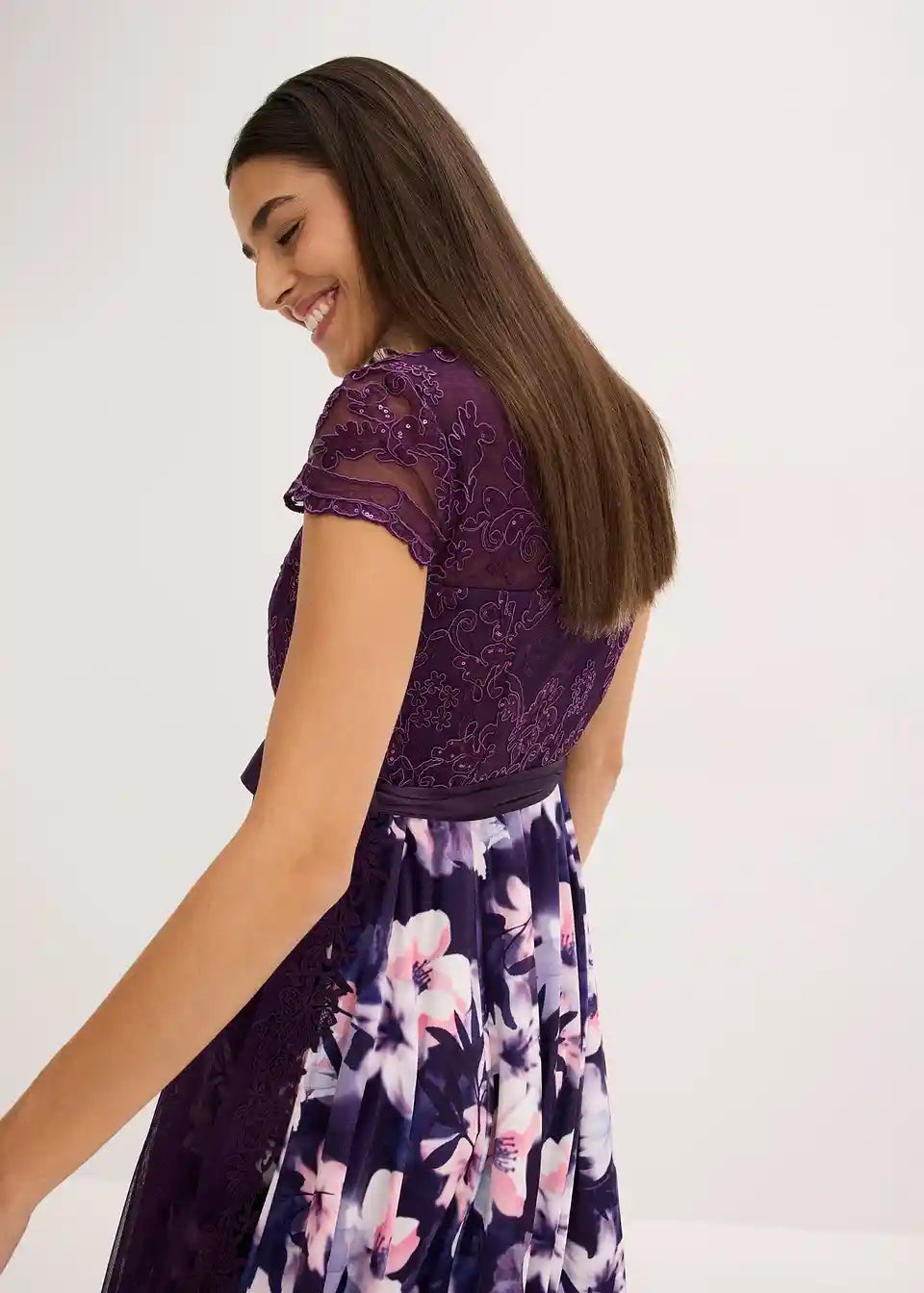 gornji materijal: haljina: 100% poliester, gornji materijal 2: haljina: 100% poliester, donji dio: haljina: 96% poliester, 4% elastan, podstava: haljina: 100% poliester, pregača: 100% poliester, mreža: pregača: 100% poliester