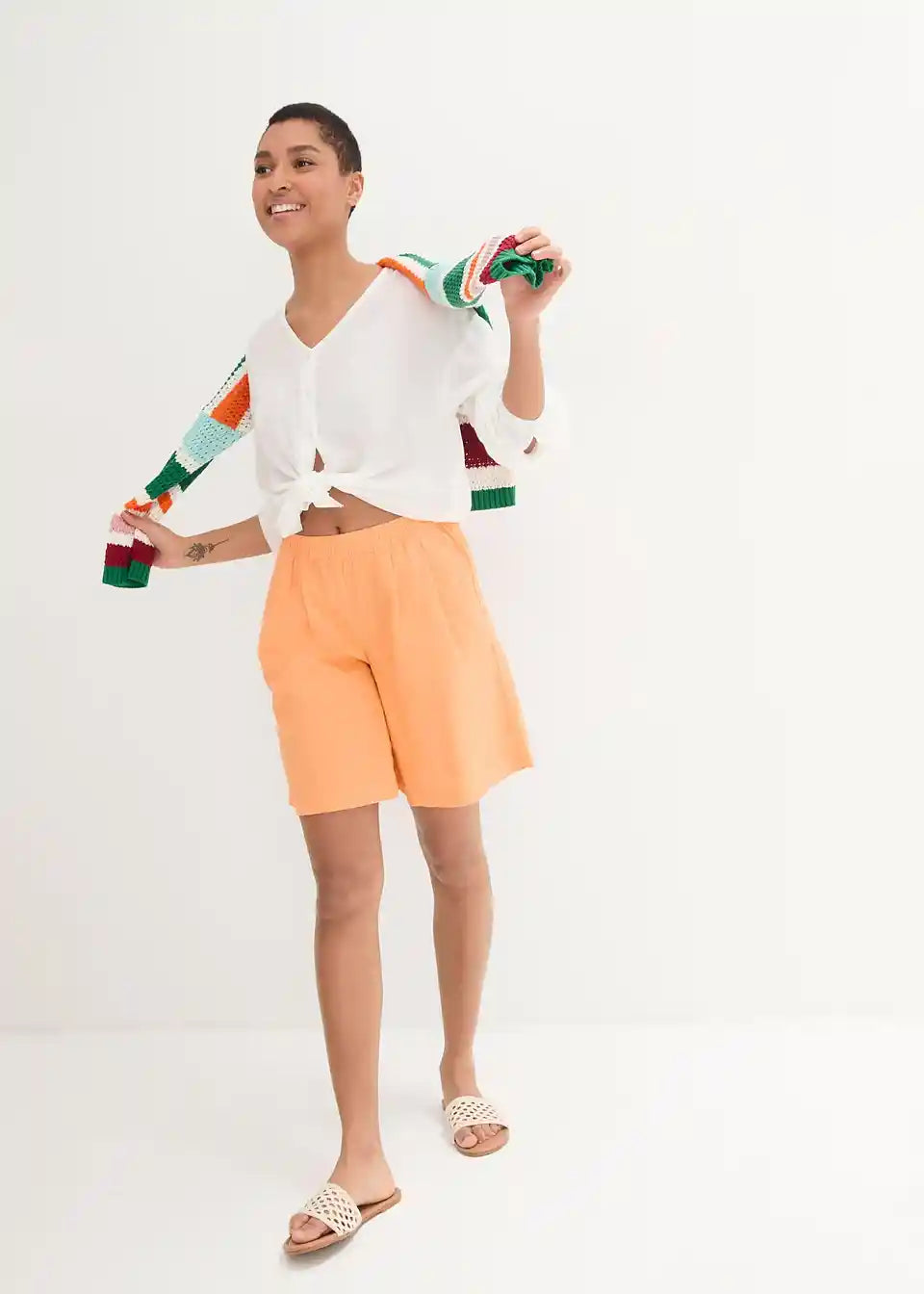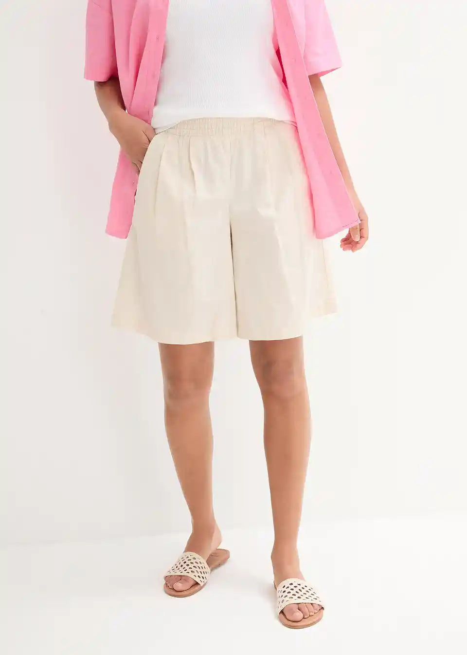 Moderne kratke hlače od lana koji obavijaju bokove širim krojem