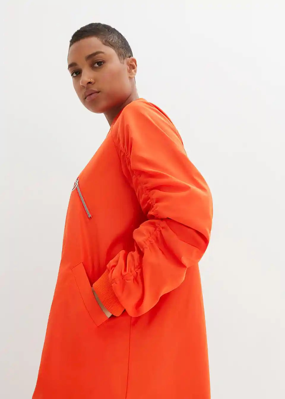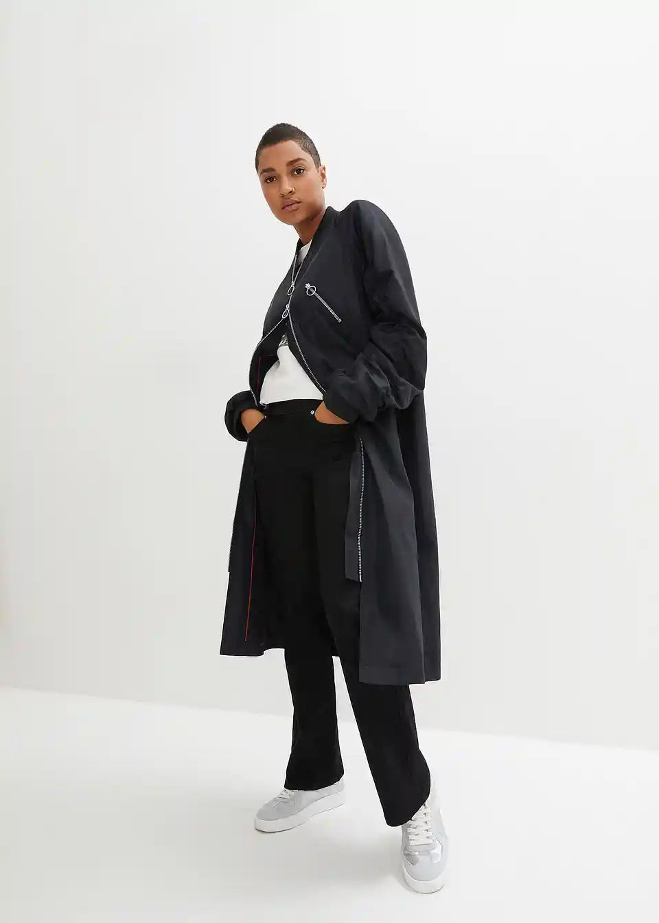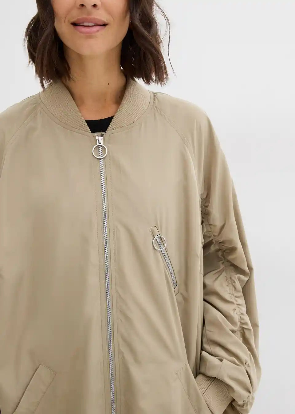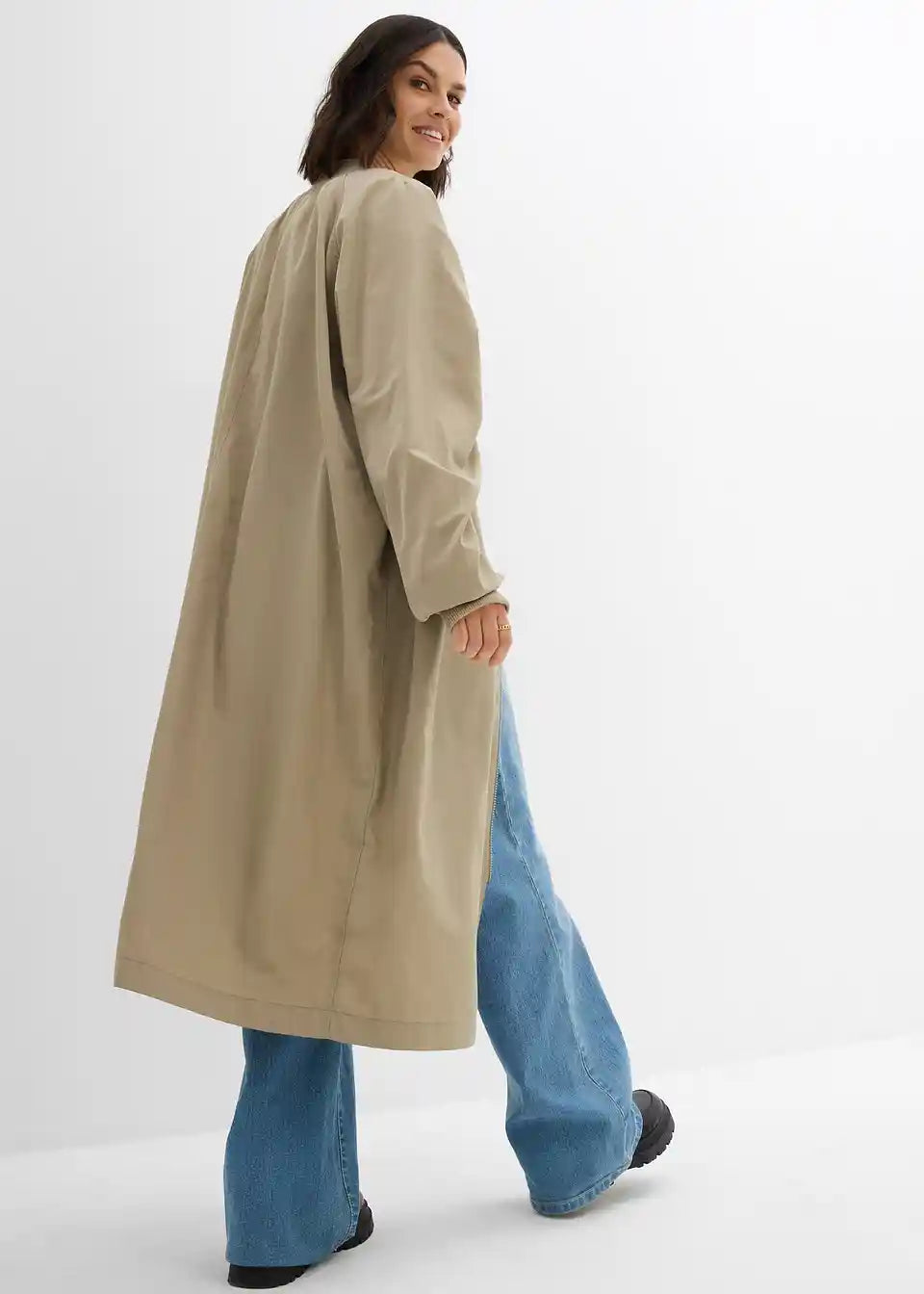 ležeran, moderan kaput s detaljima nabiranja na rukavu, pletenim manžetama i ušivenim džepovima
