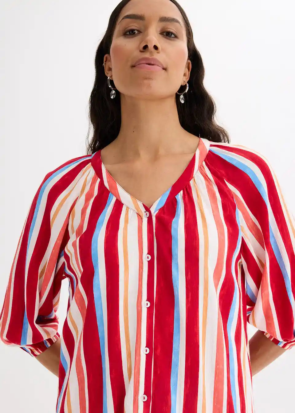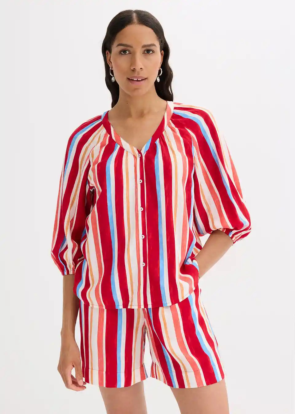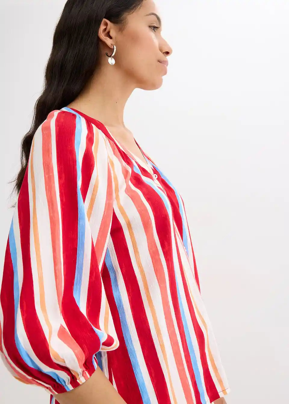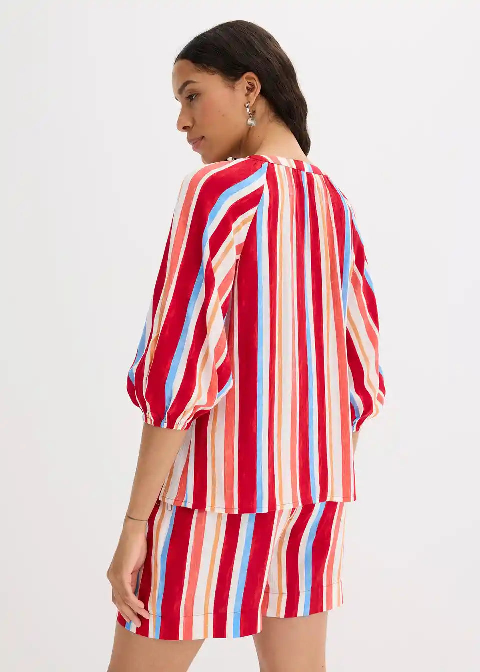 ljetna bluza od strukturirane viskoze s balon rukavima 3/4 dužine