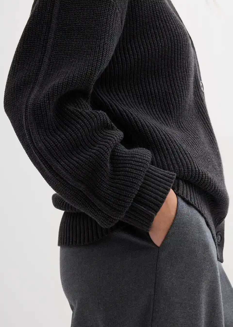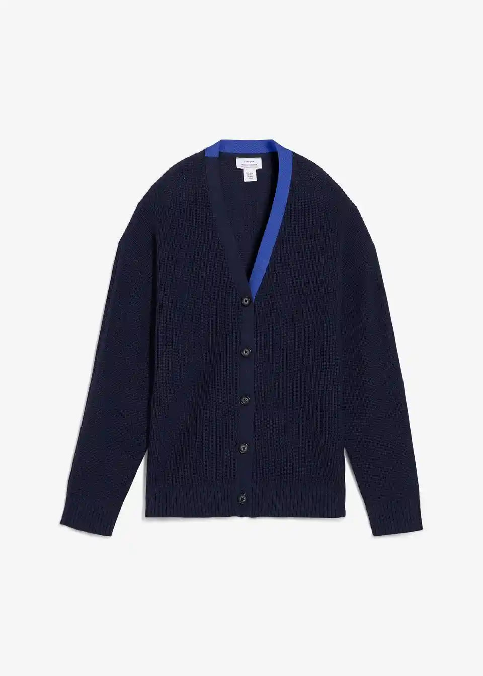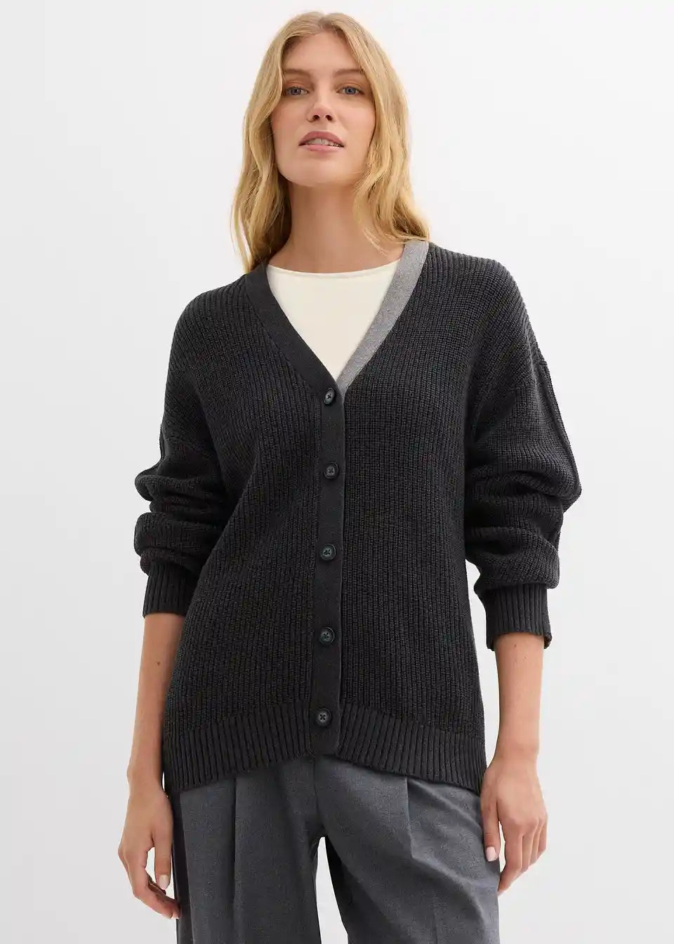 Loose-Fit Cardigan s V-izrezom, kontrastnom prednjom kopčom s gumbima i spuštenim ramenima