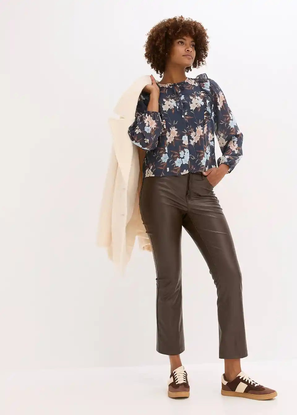 Ležerna bluza od šifona s trakicom za vezanje, gumbima i volanima