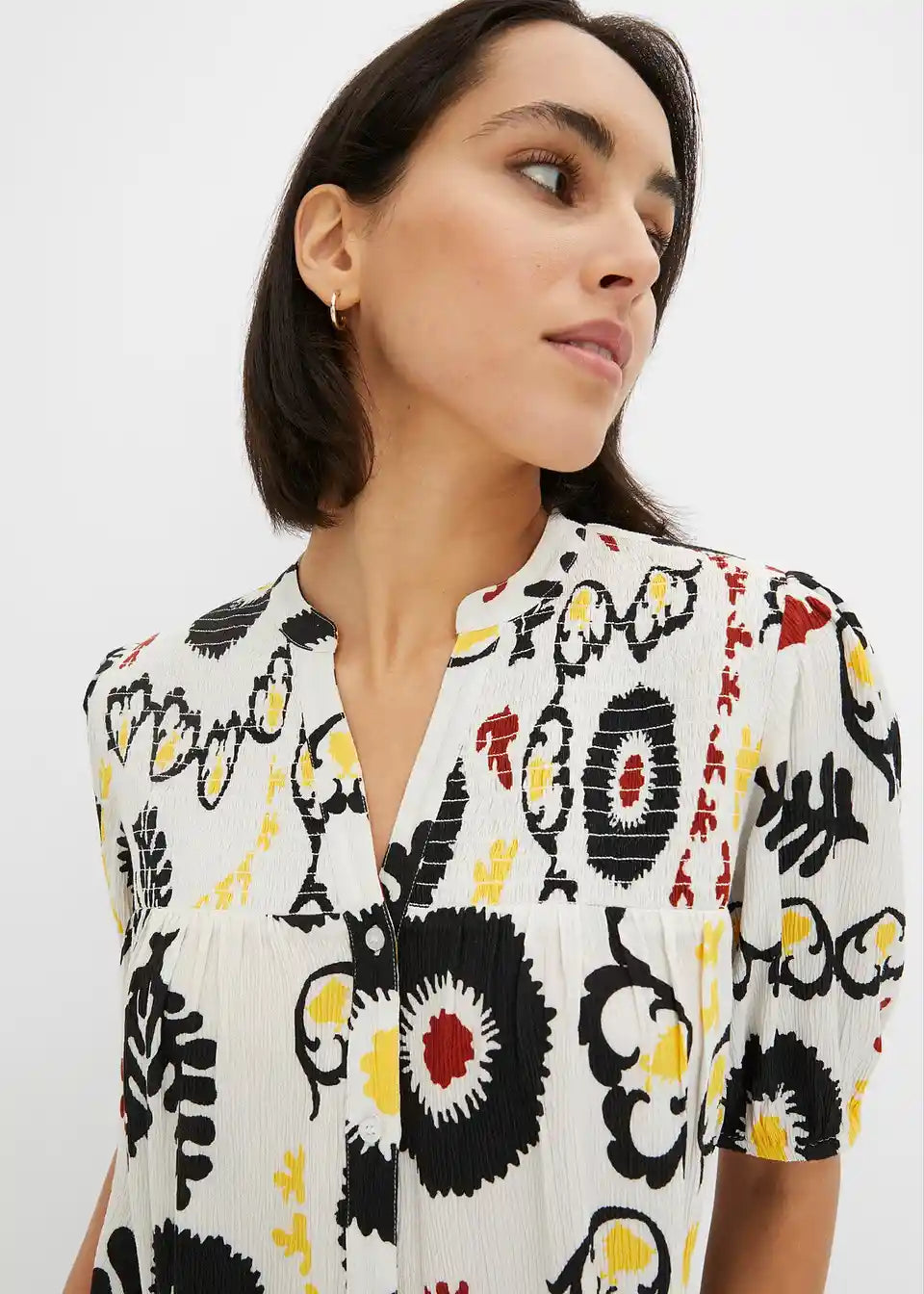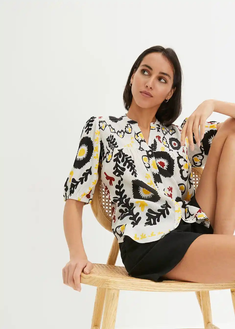 Bluza od nagužvanog materijala s detaljem gustih nabora u dužini oko bokova