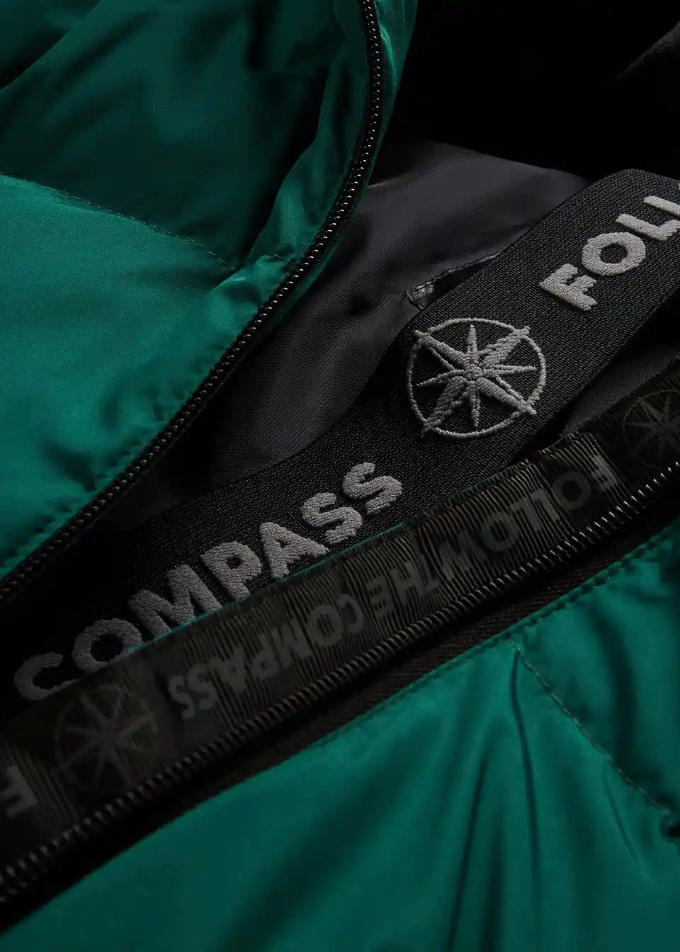 Materijal:gornji materijal: 66% poliester, 34% poliester (reciklirani), podstava: 55% poliester, 45% poliester (reciklirani), podstava kapuljače: 94% poliester, 6% elastan, punjenje: 80% paperje (reciklirani), 20% perje, podstava džepova: 94% poliester, 6% elastan