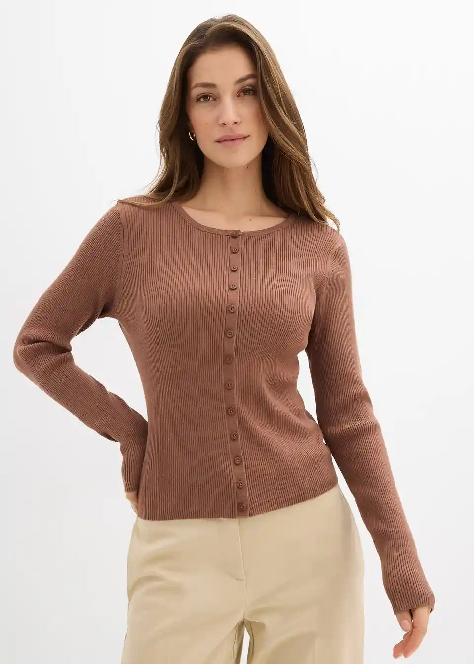Moderan rebrasti kardigan od mekanog miješanog materijala s viskozom