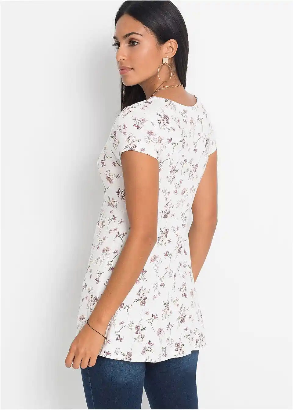 Ova očaravajuća majica apsolutno laska figuri. Duboki V-izrez i čvorasto nabrana tkanina u području grudi naglašavaju dekolte. Ispod grudi mekani materijal koji lagano pada nježno obavija tijelo. U kombinaciji s usko krojenim hlačama ili tajicama, majica iz BODYFLIRT kolekcije uspješno ističe ženstvenost.
