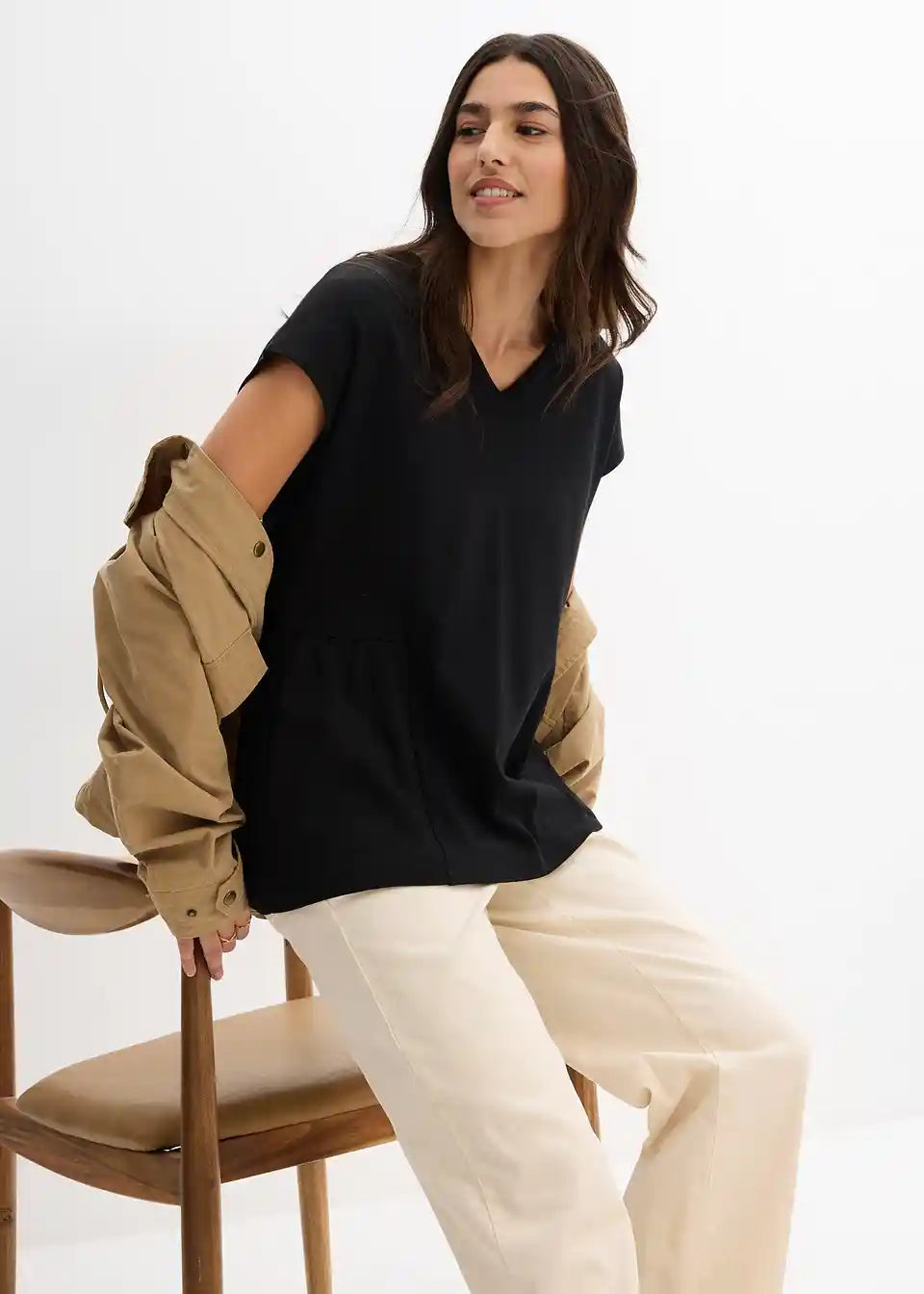 Majica A-kroja s porubom u struku i produljenim stražnjim dijelom