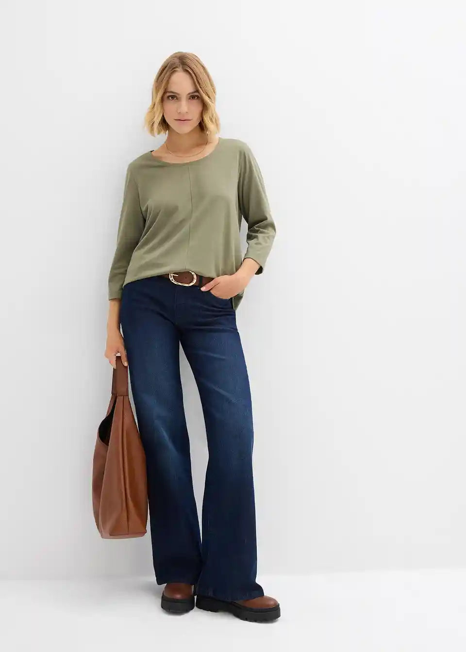 Široko krojena majica s 3/4 rukavima od čiste pamuka