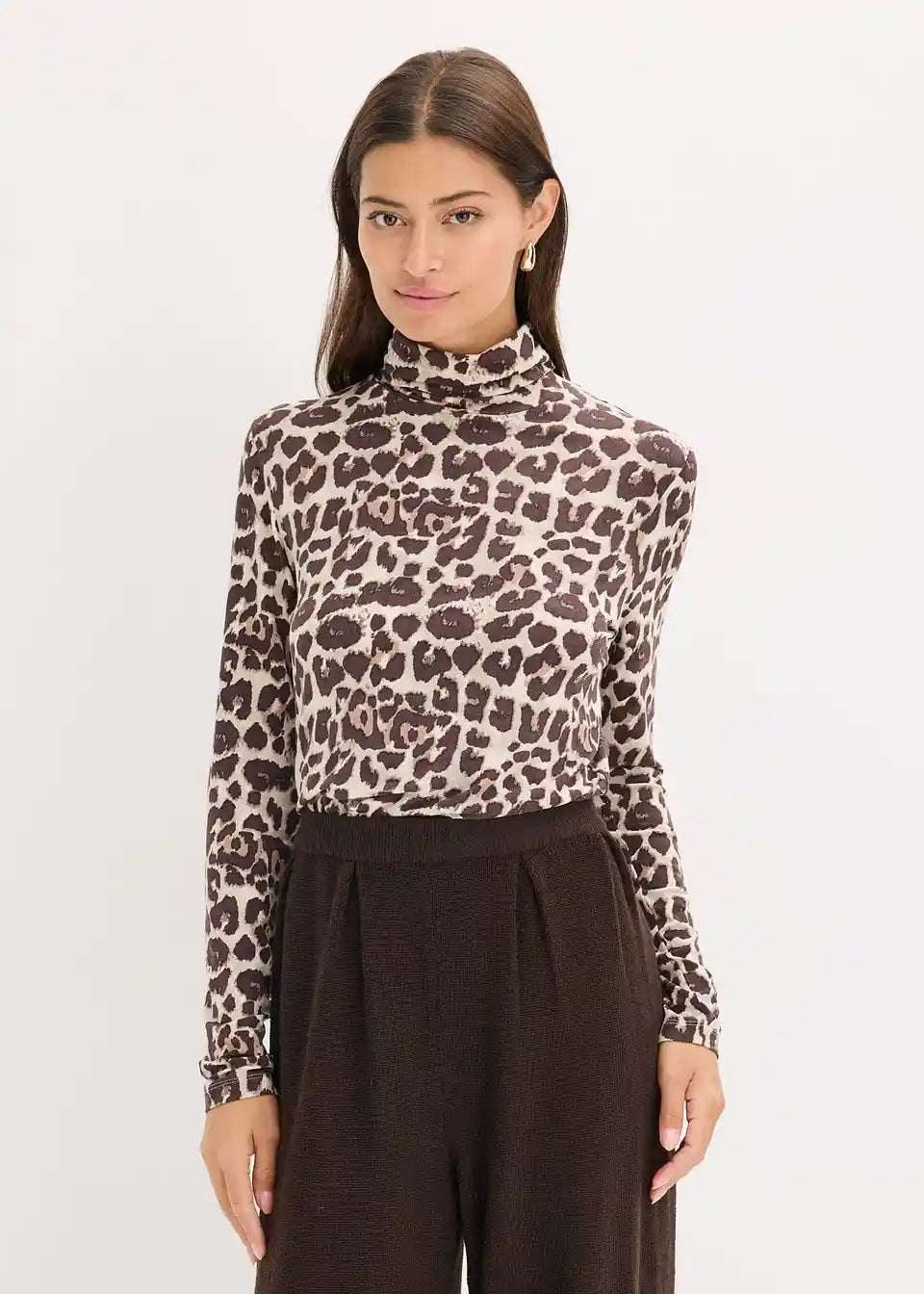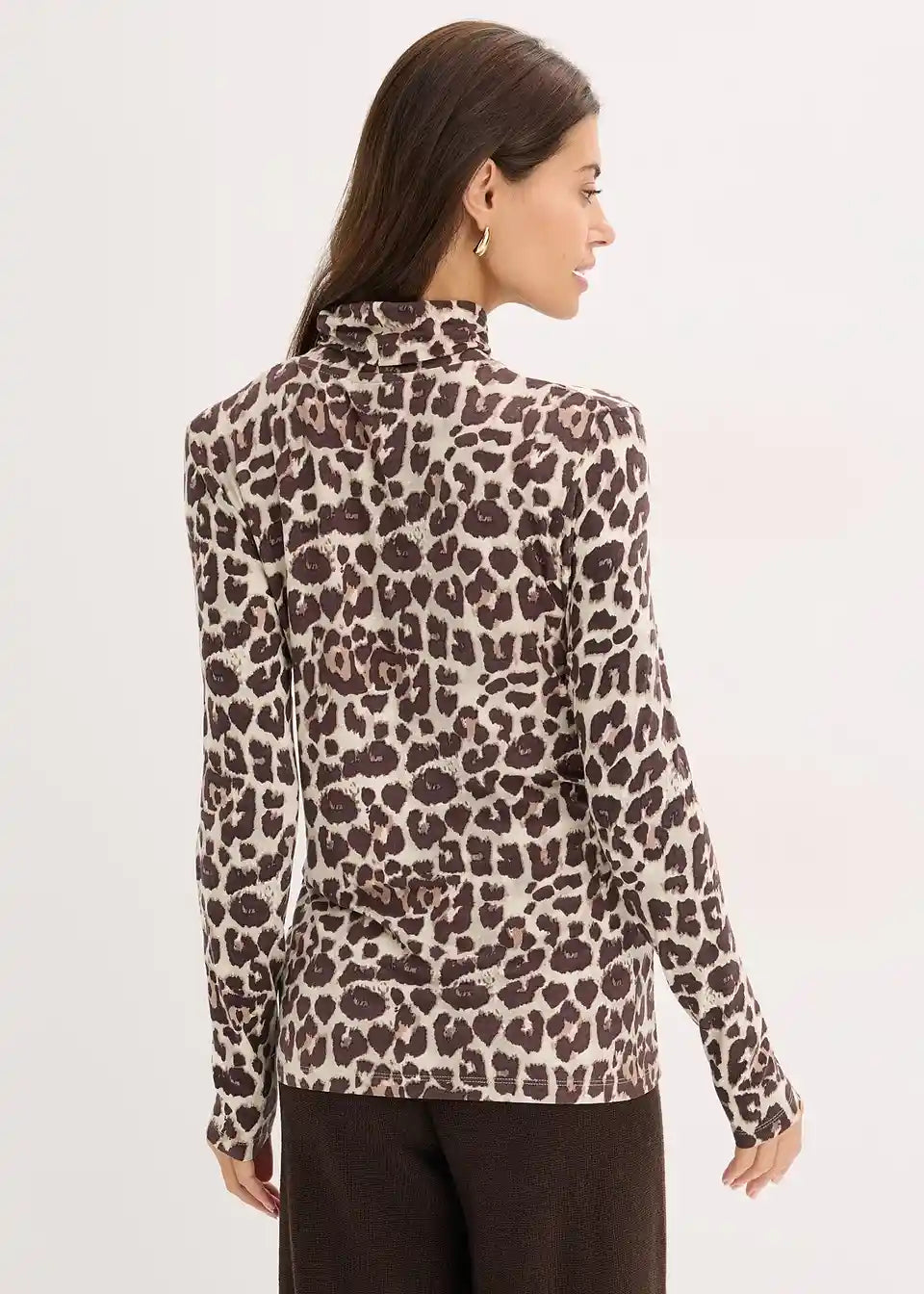 moderno printana majica s dugim rukavima od mekanog mješavine viskoze sa stojećom ovratnikom