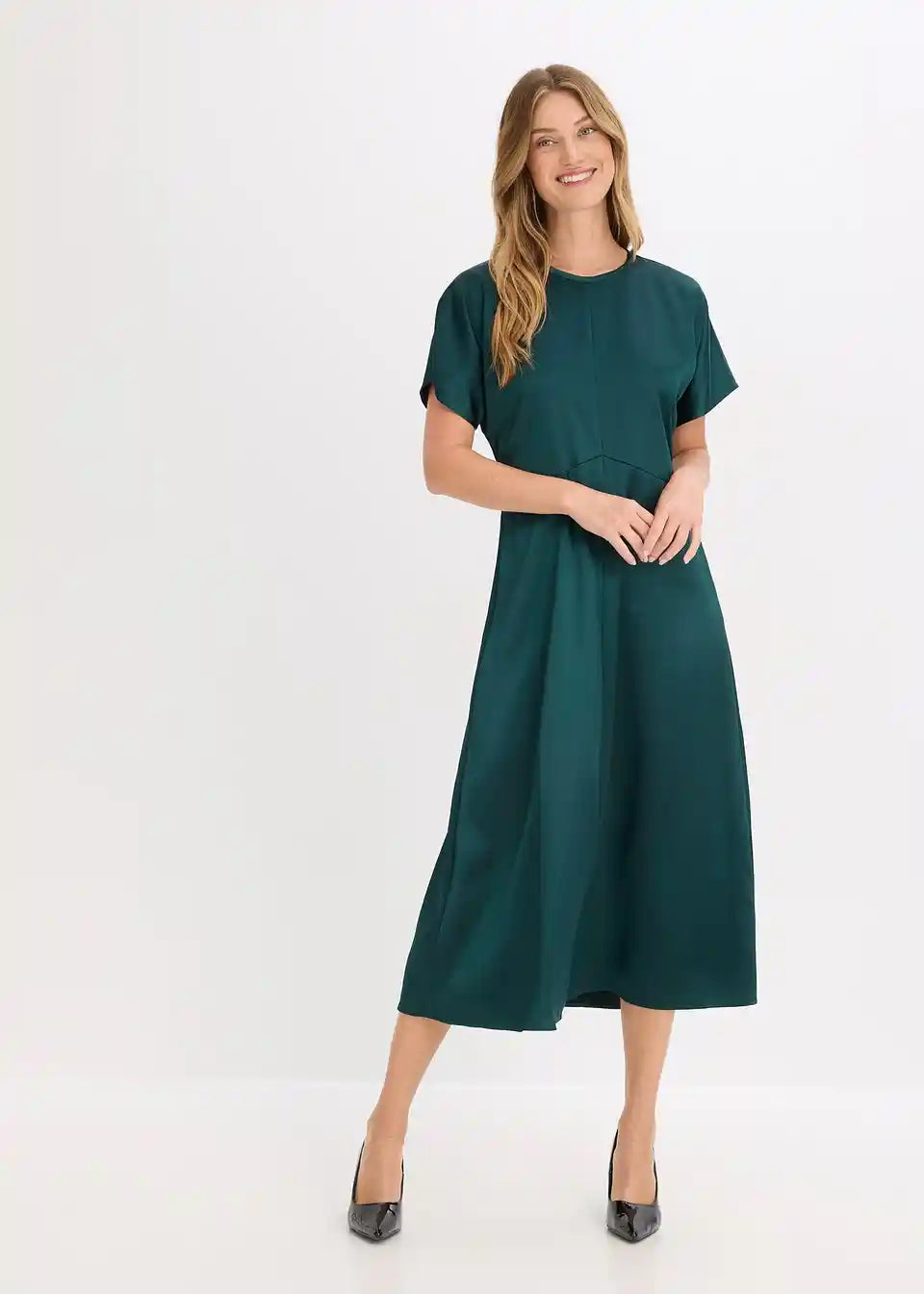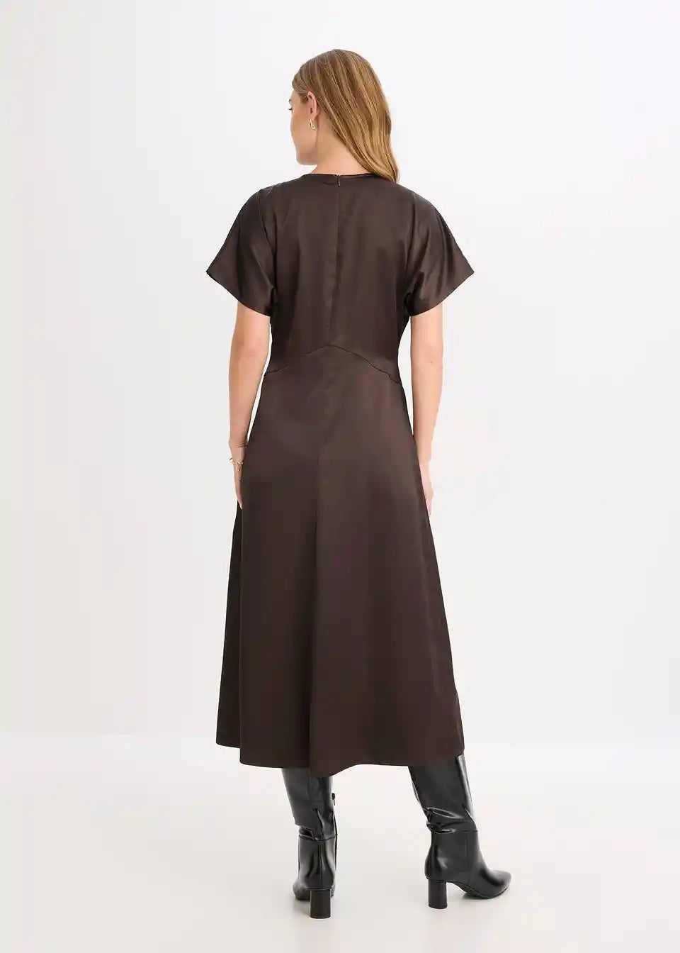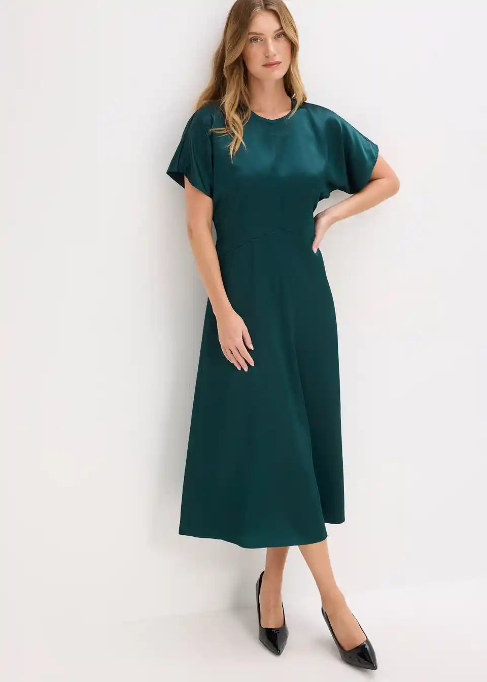 Midihaljina od lepršavog satena ima strukiranu siluetu i široke rukave