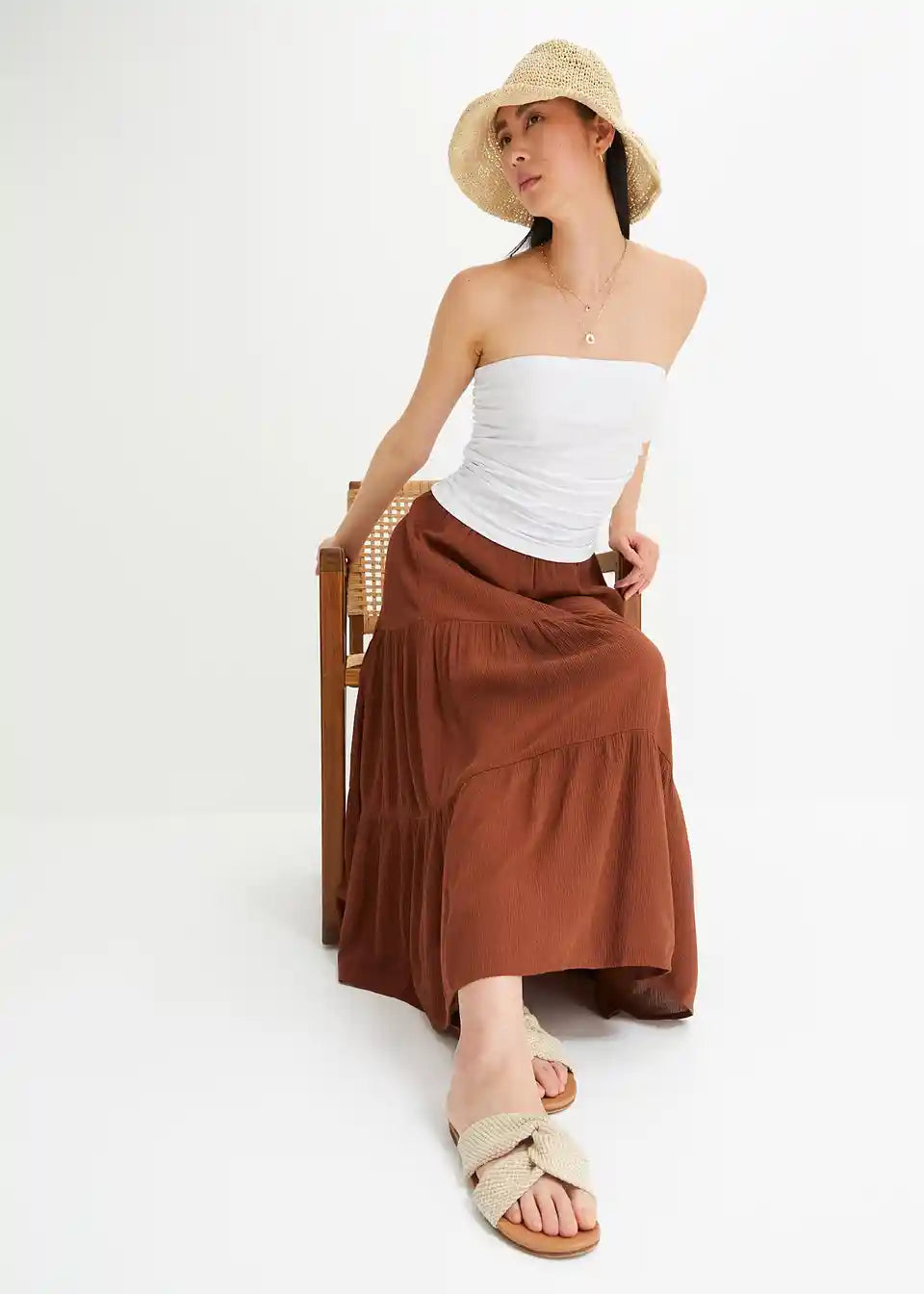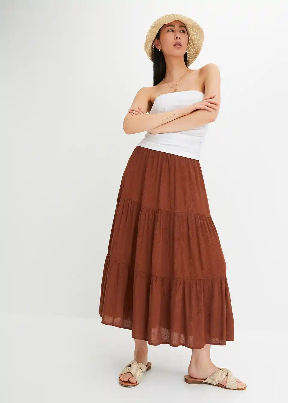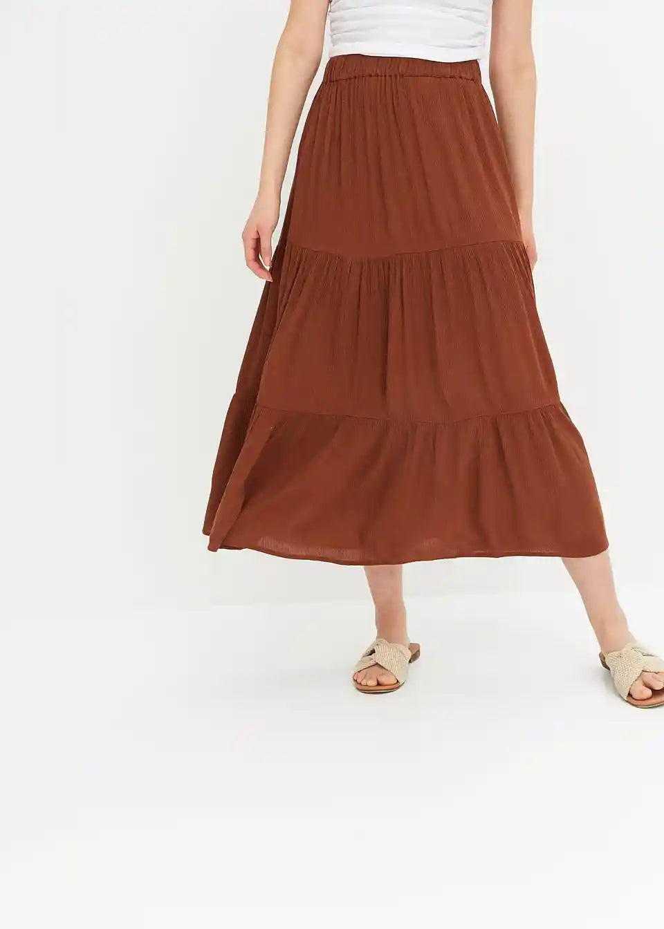 Ljetna slojevita midisuknja od laganog krep materijala