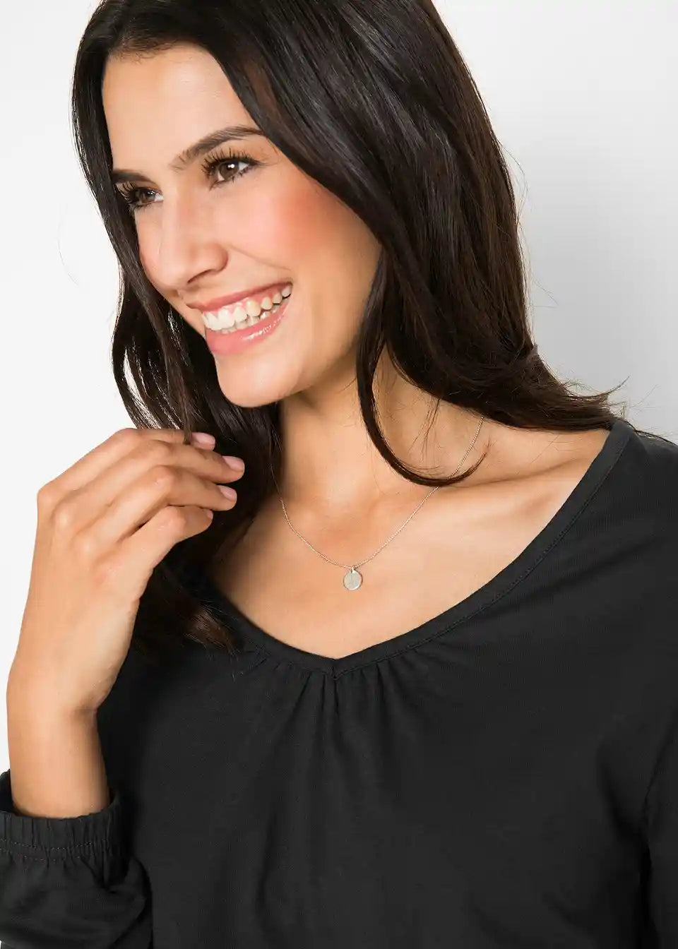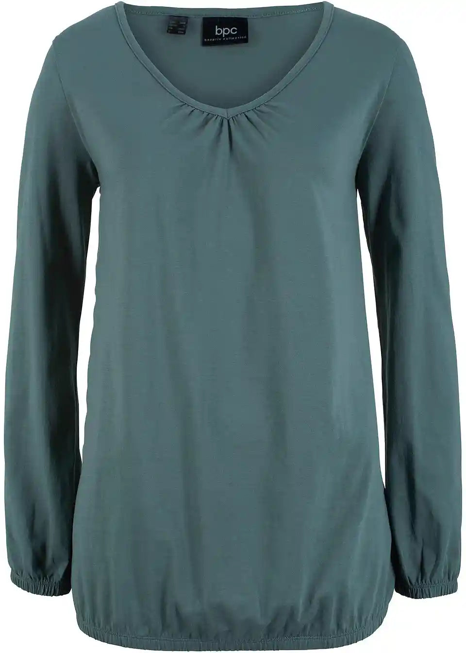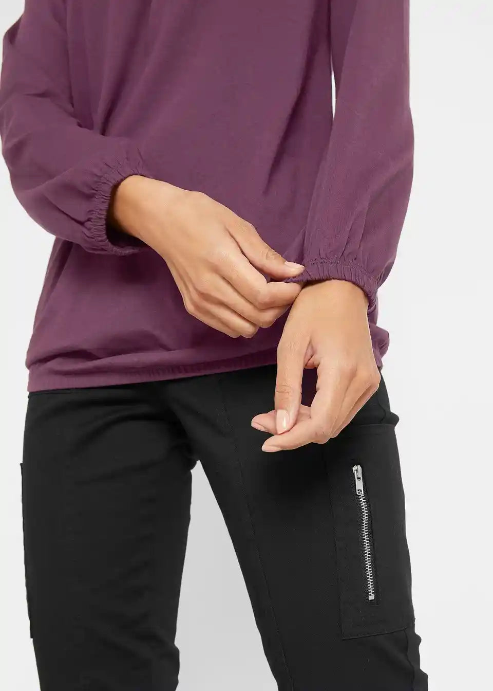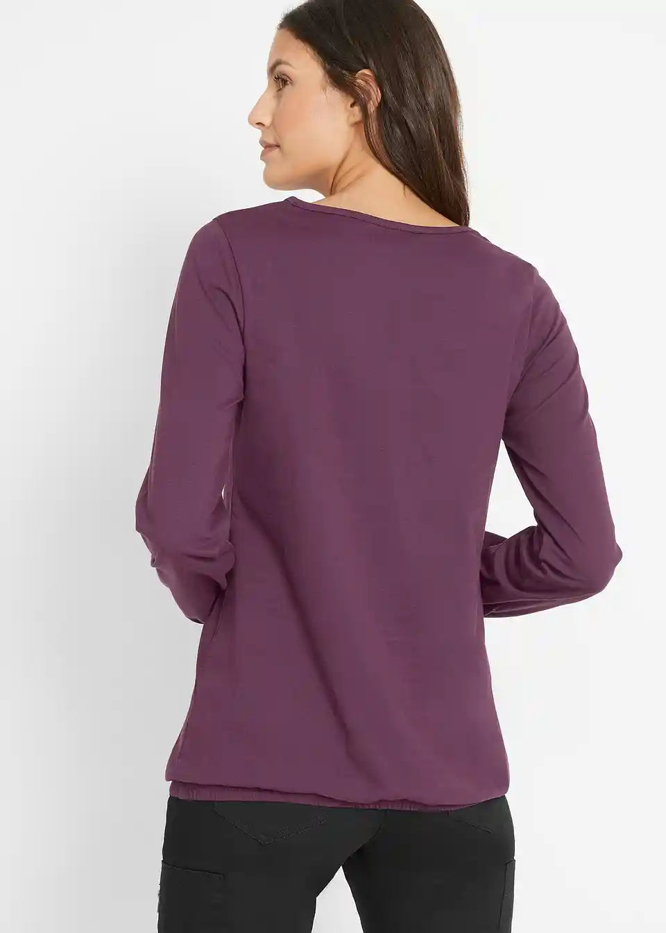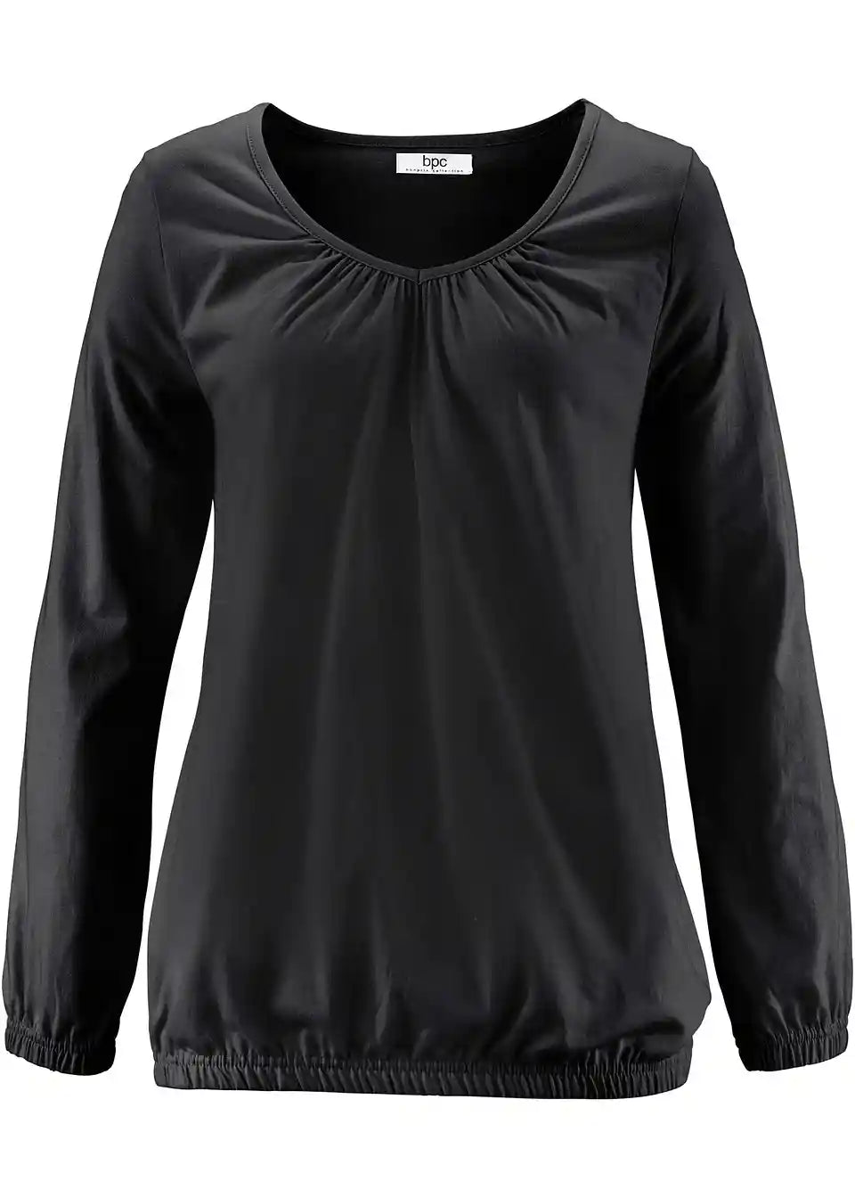 Ova praktična majica dugih rukava je lijepi osnovni komad za svaki dan. V-izrez s laganim nabiranjem daje lijepi naglasak ovom inače prilično jednostavnom modelu bpc-a. Majica dugih rukava sa rubom i elastičnim završetkom na rukavima nudi najbolju udobnost nošenja. Raznolik izbor boja omogućuje nositeljici razne opcije kombiniranja outfita.