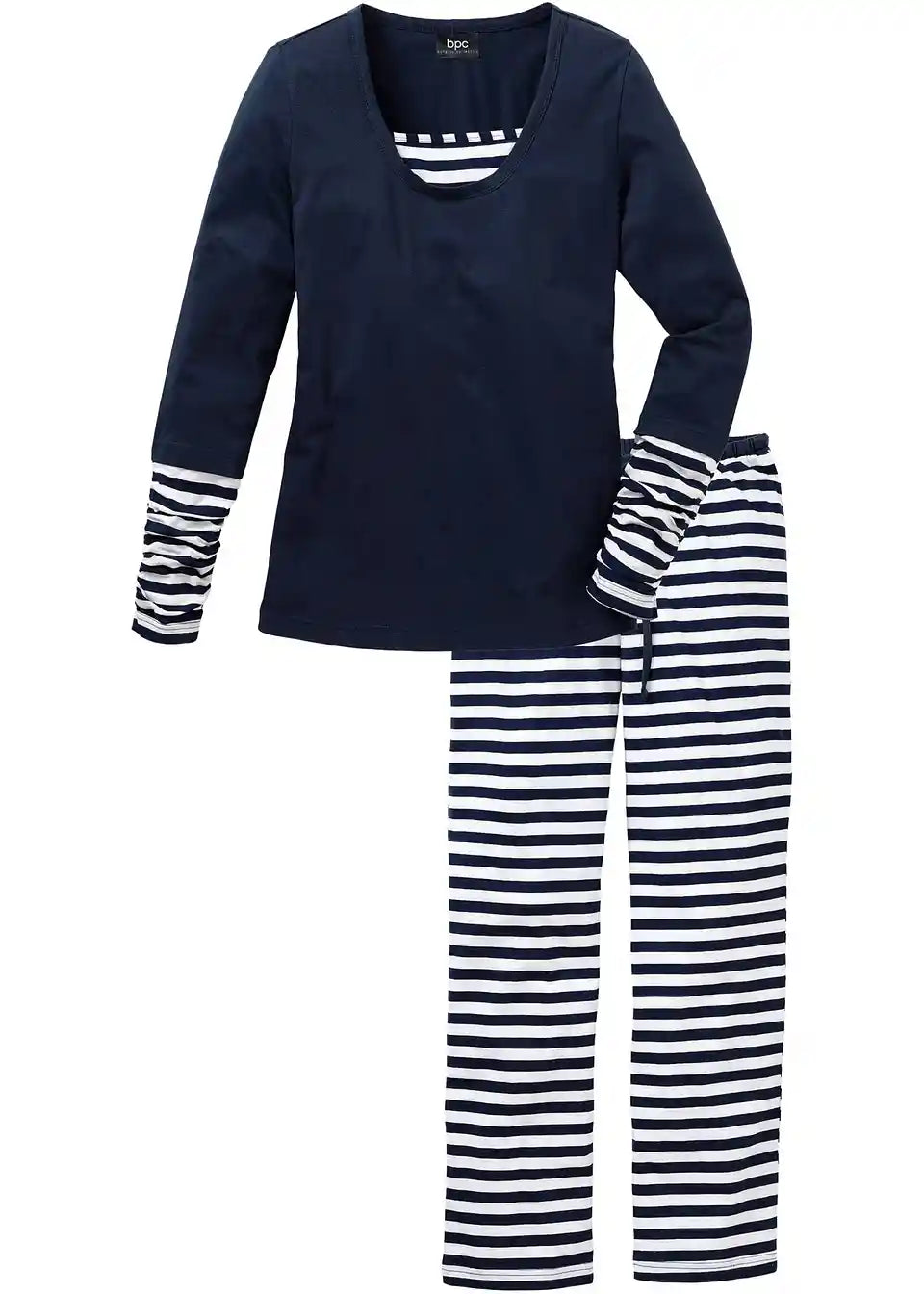 Ova udobna pidžama osigurava visok osjećaj ugode za vrijeme spavanja. Gornji dio dugih rukava vizualno privlači pažnju sofisticiranim detaljima: okrugli izrez i završeci rukava ukrašeni su prugastim umetkom. Krajevi rukava su privlačno naborani. Također prugaste hlače skladno upotpunjuju ovu moderno dizajniranu pidžamu marke bpc. Zahvaljujući ležernom kroju i elastičnom pojasu s vezicom, duge hlače vrlo su ugodne za nošenje.