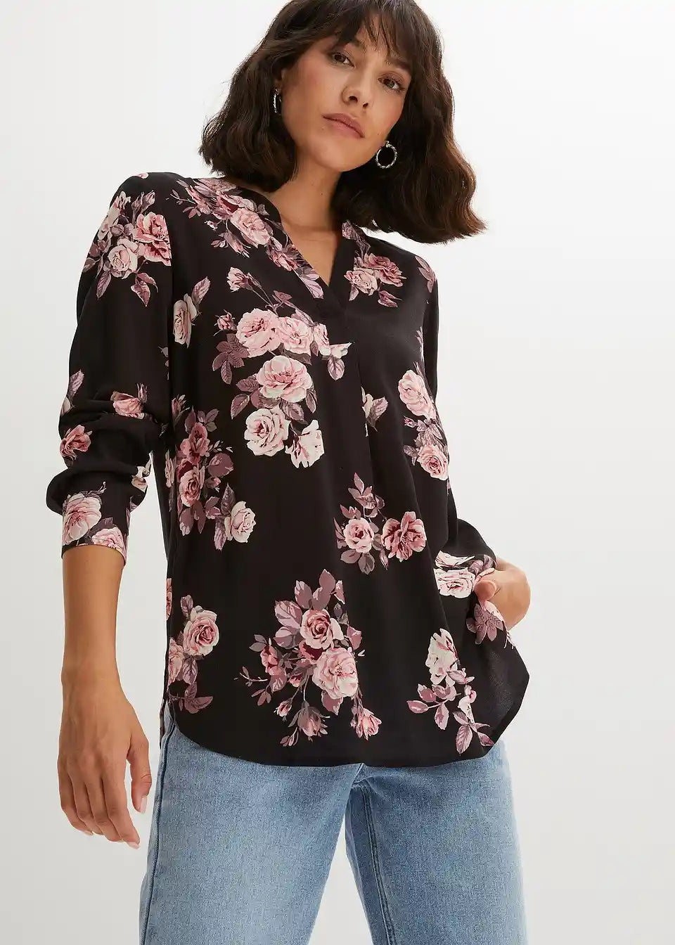 Moderna bluza s bočnim prorezima i zaobljenim rubom