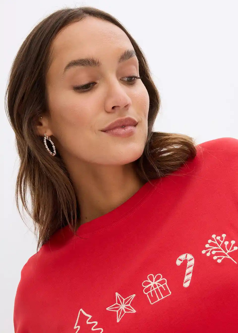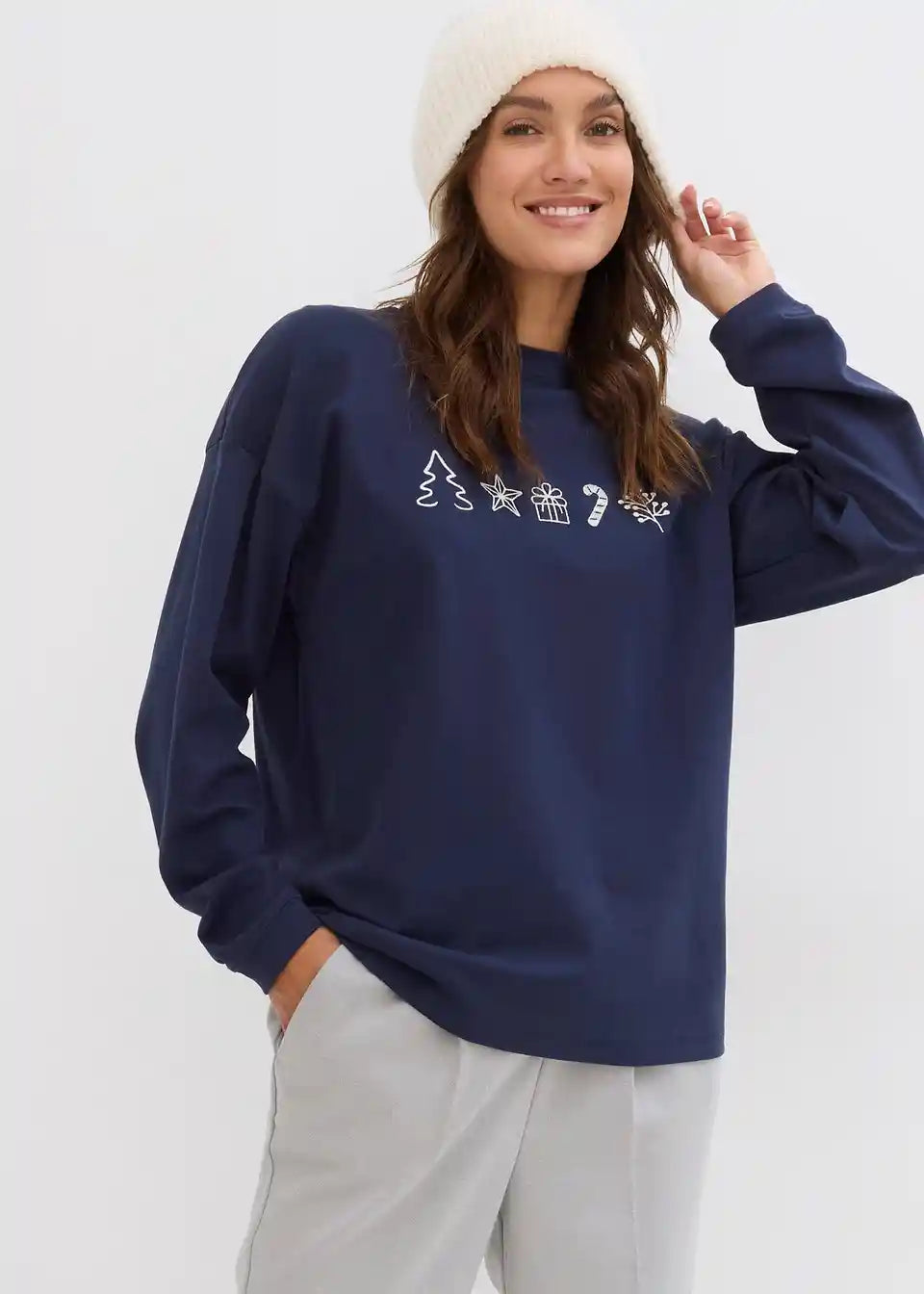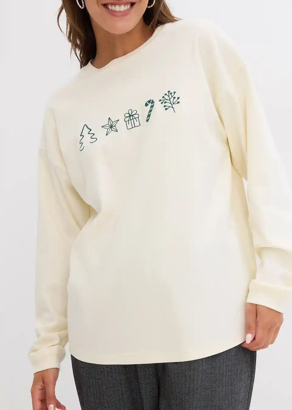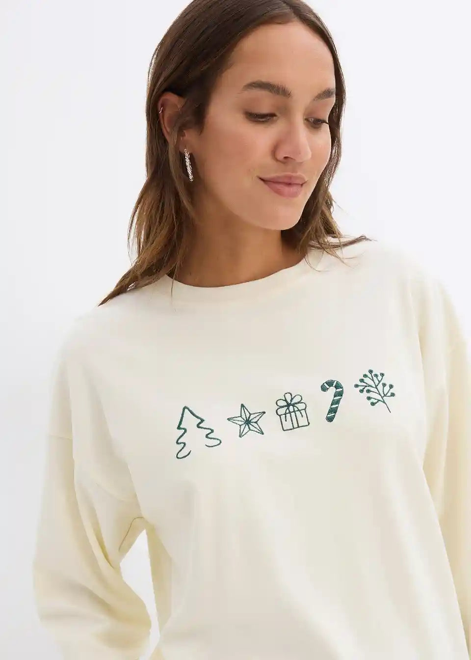 Božićna majica s vezom i dugim rukavima oversize kroja
