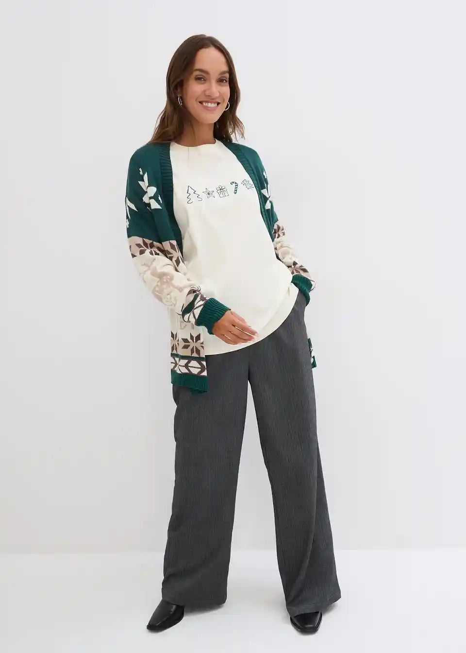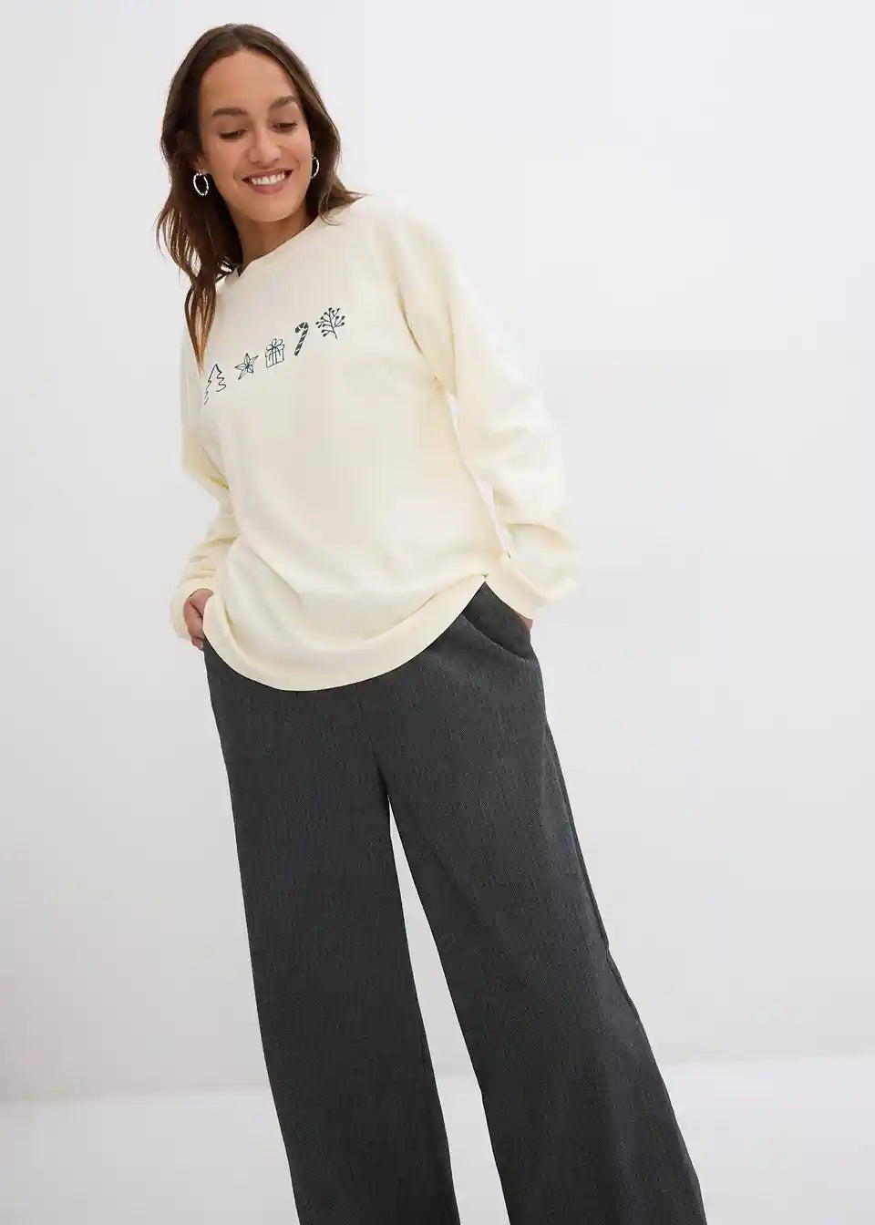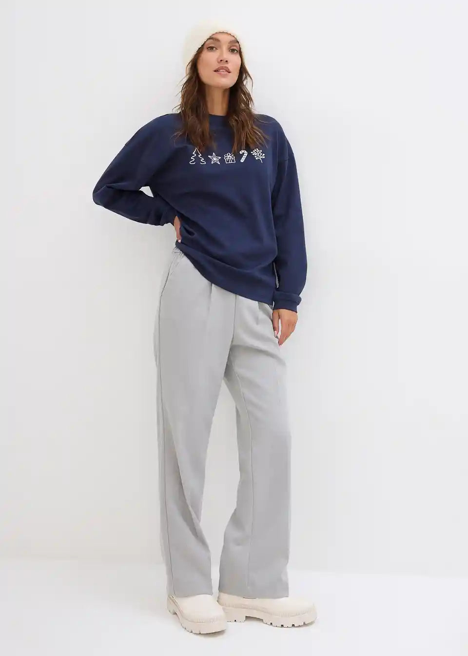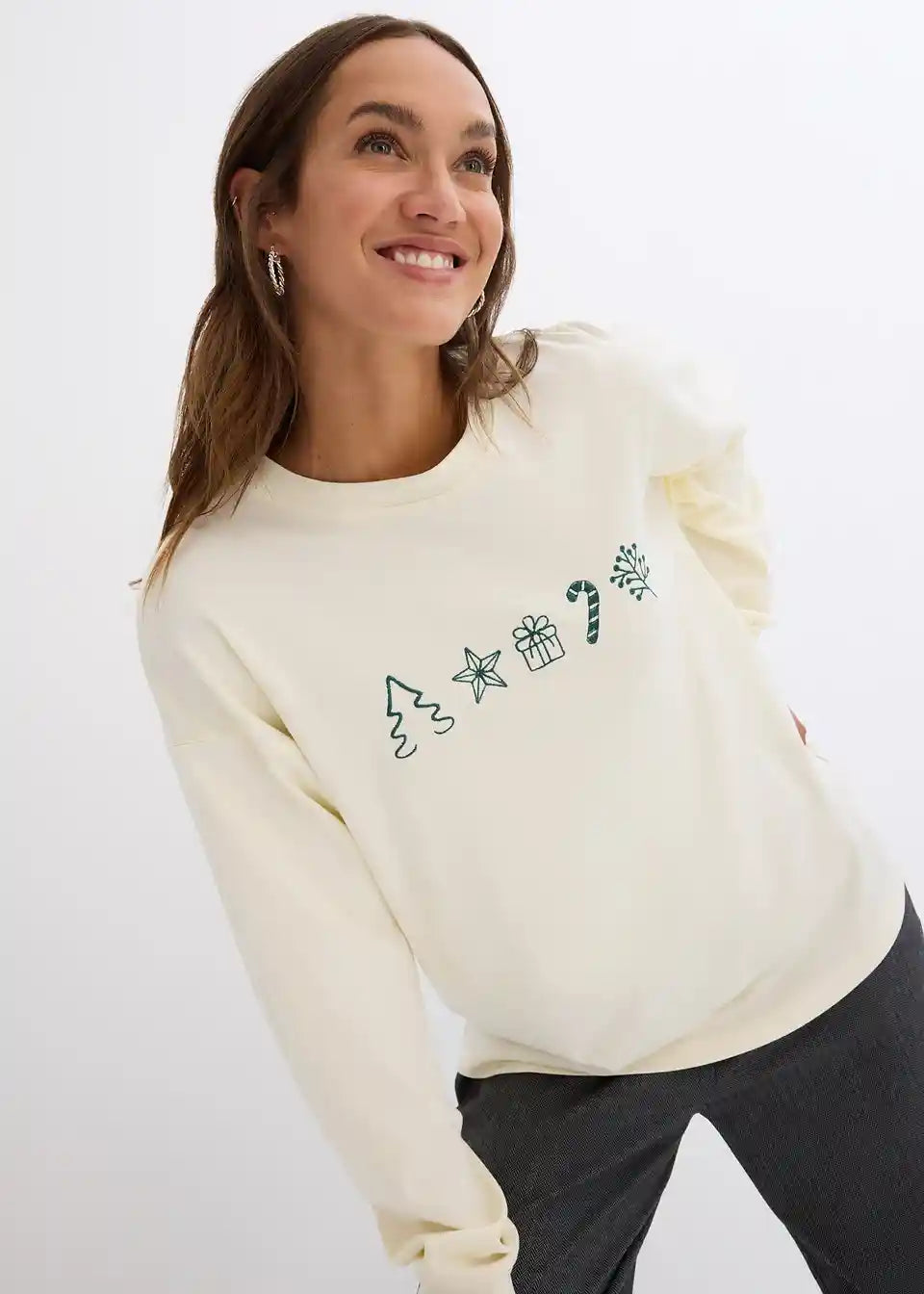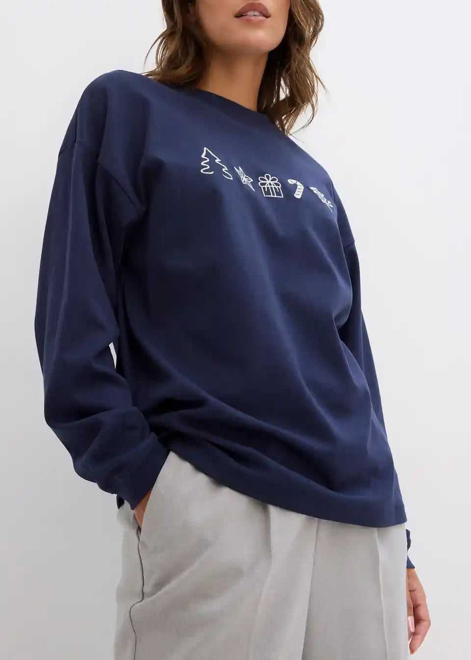 Božićna majica s vezom i dugim rukavima oversize kroja