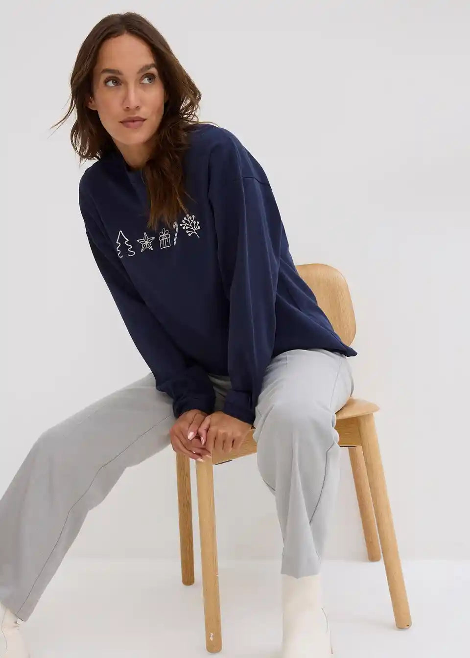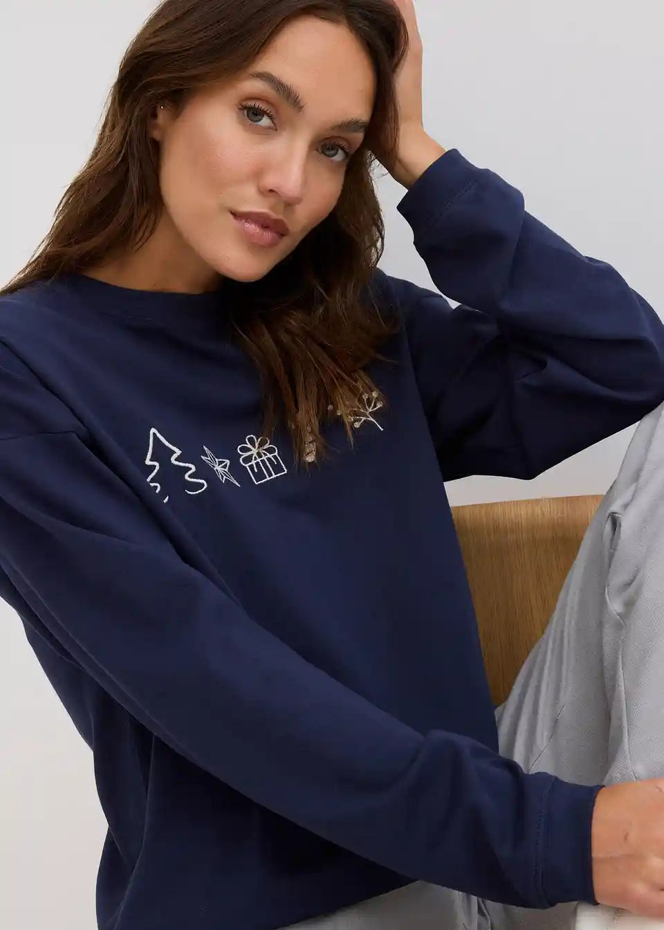 Majica dugih rukava ležernog kroja s božićnim vezom
