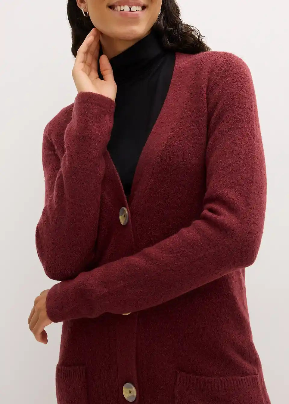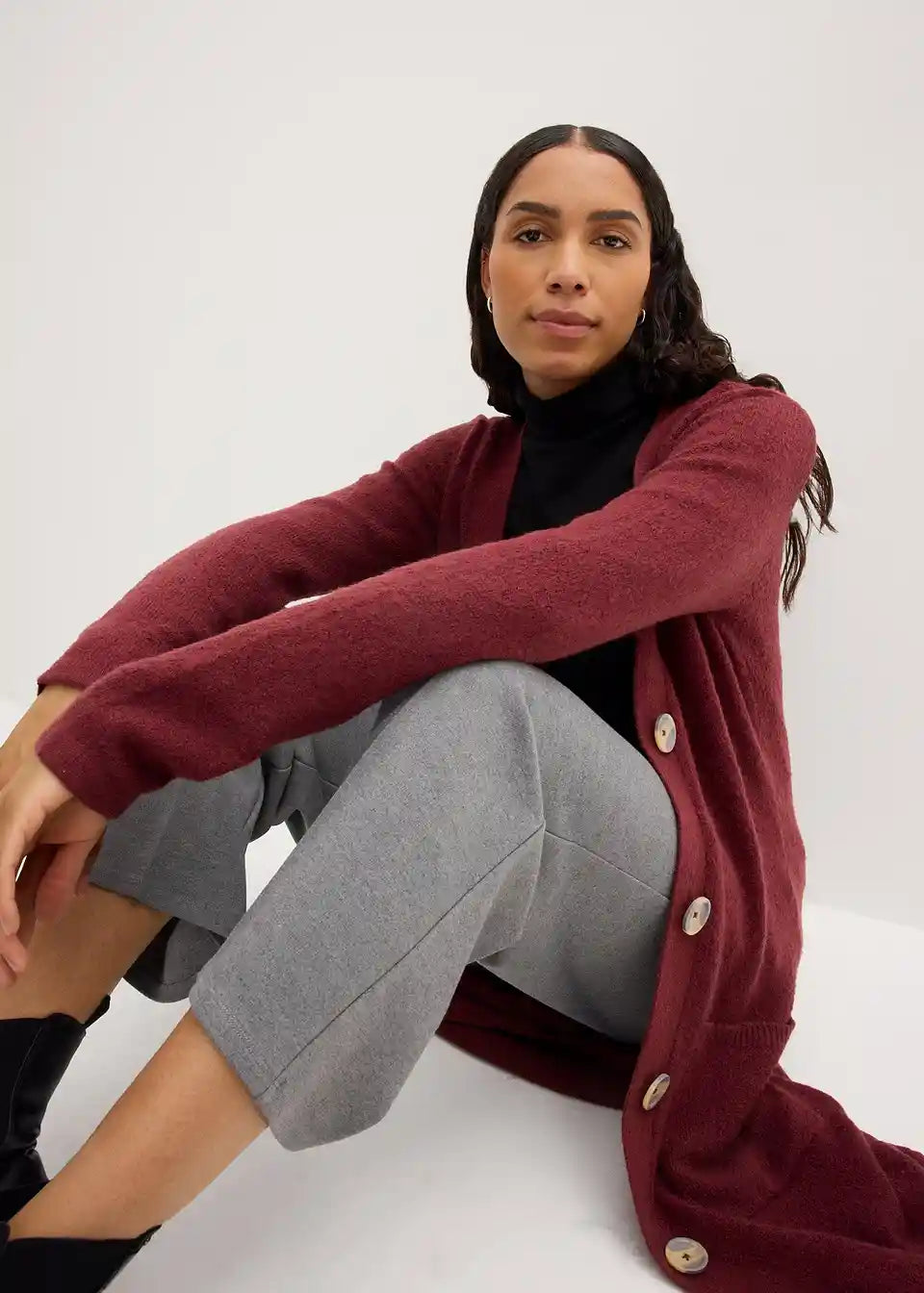 Udoban pleteni kardigan od mekanog prediva u figuri povoljnoj dužini