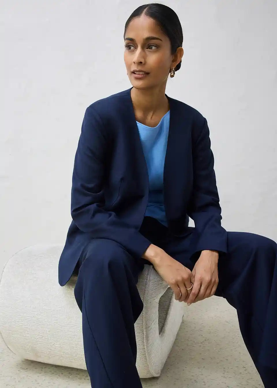Blejzer bez kragne od mekanog materijala s udjelom vune