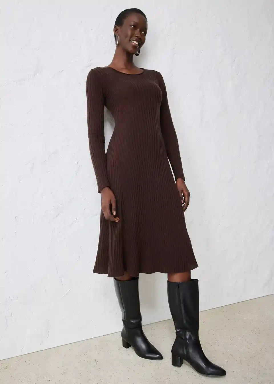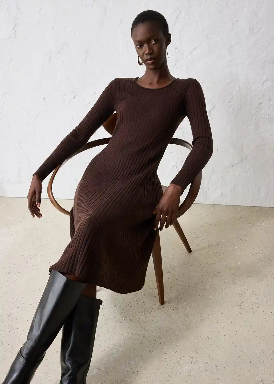 mekana rebrasta pletena haljina od merino vune