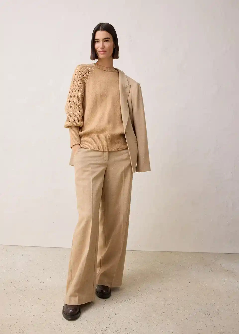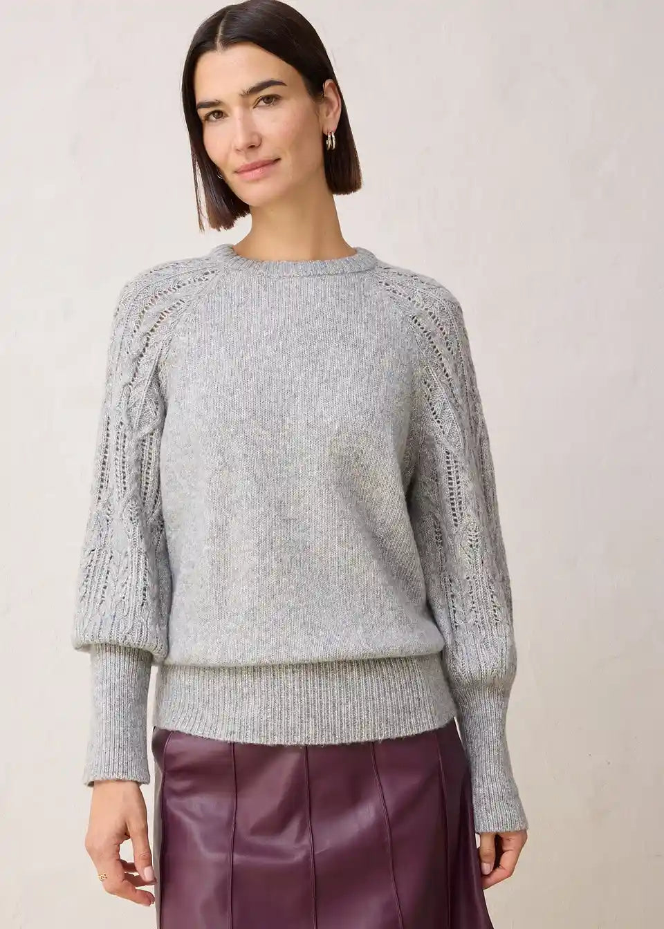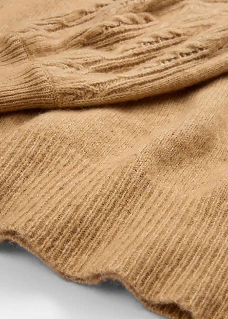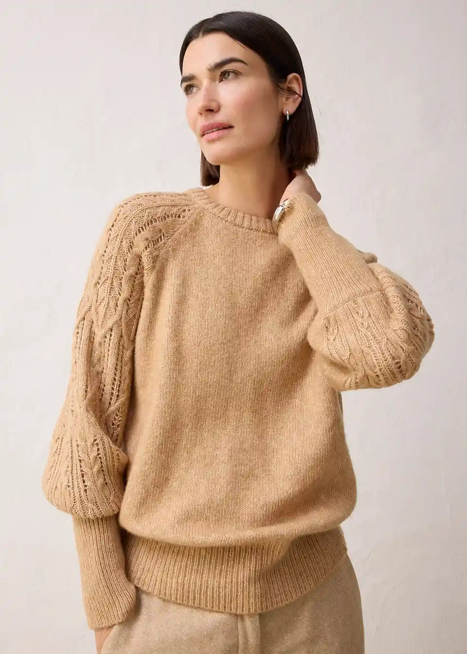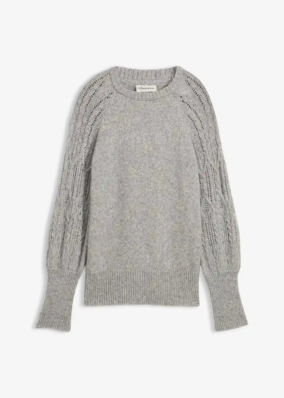 Pulover s grijućim udjelom vune, ukrasni pleteni uzorci na rukavima
