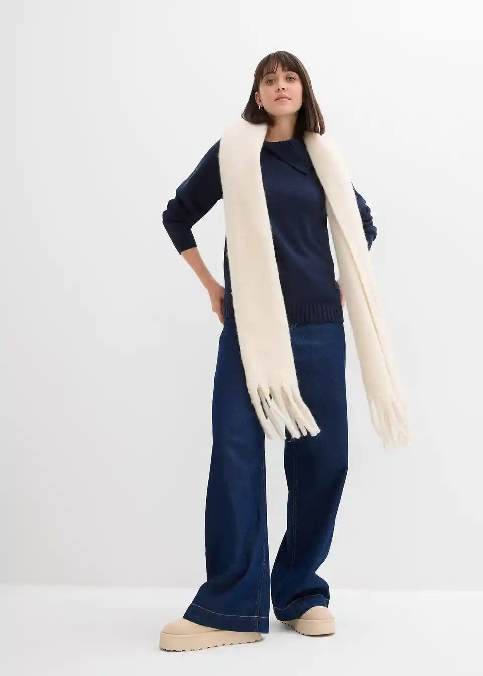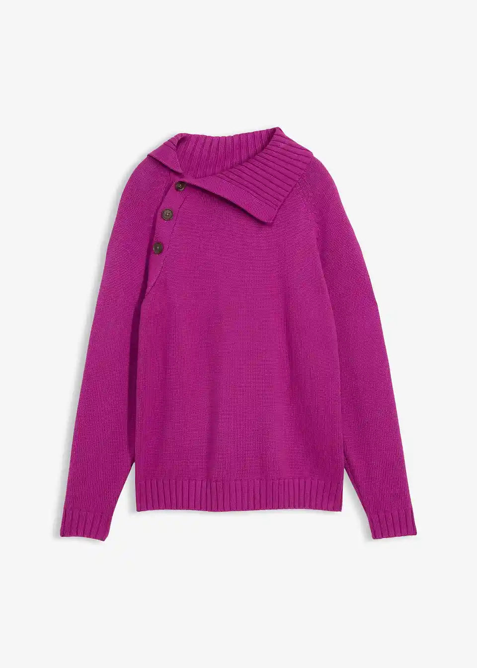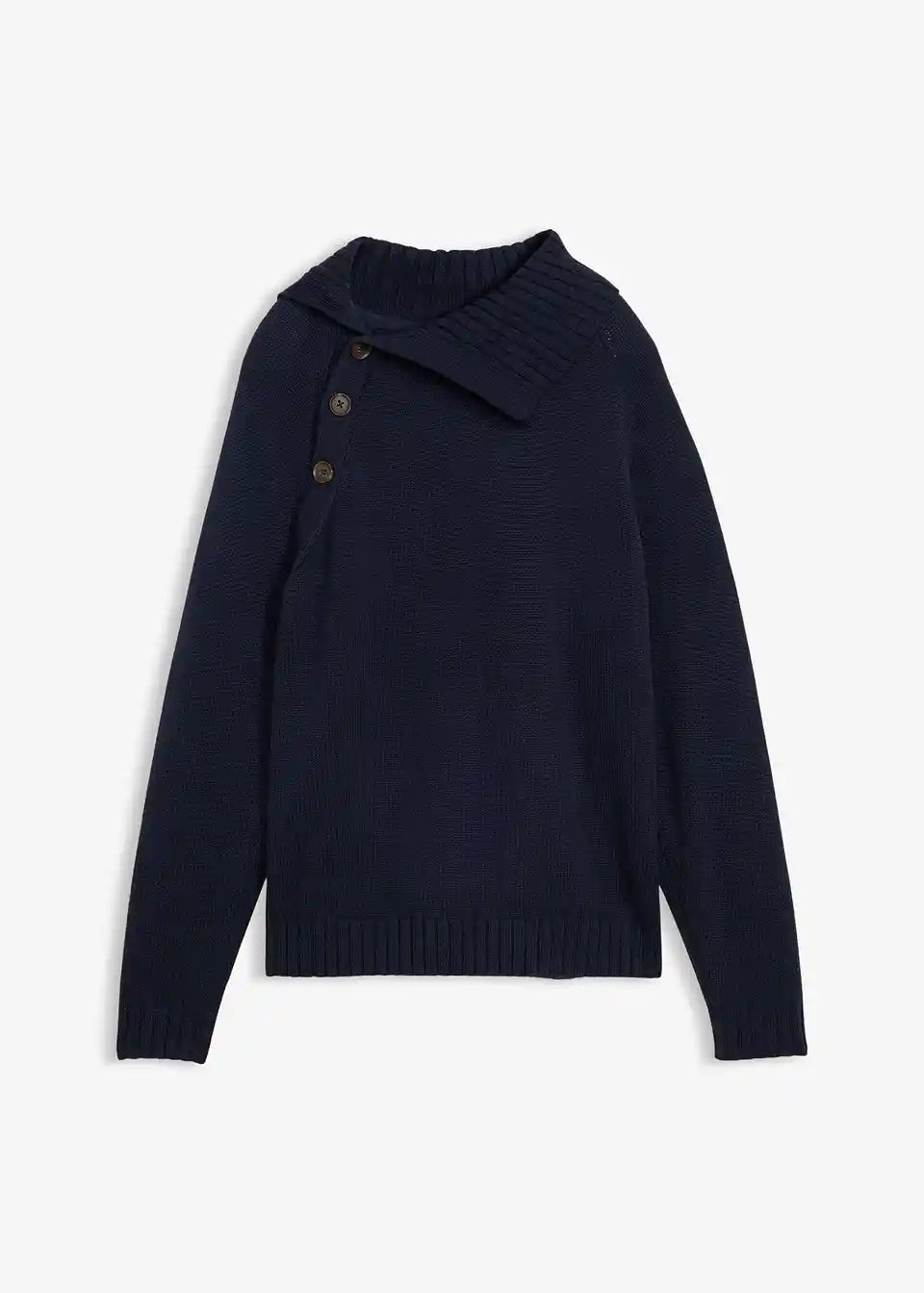 Asimetrični pulover s modernim dizajnom i koso postavljenim, rebrastim ovratnikom