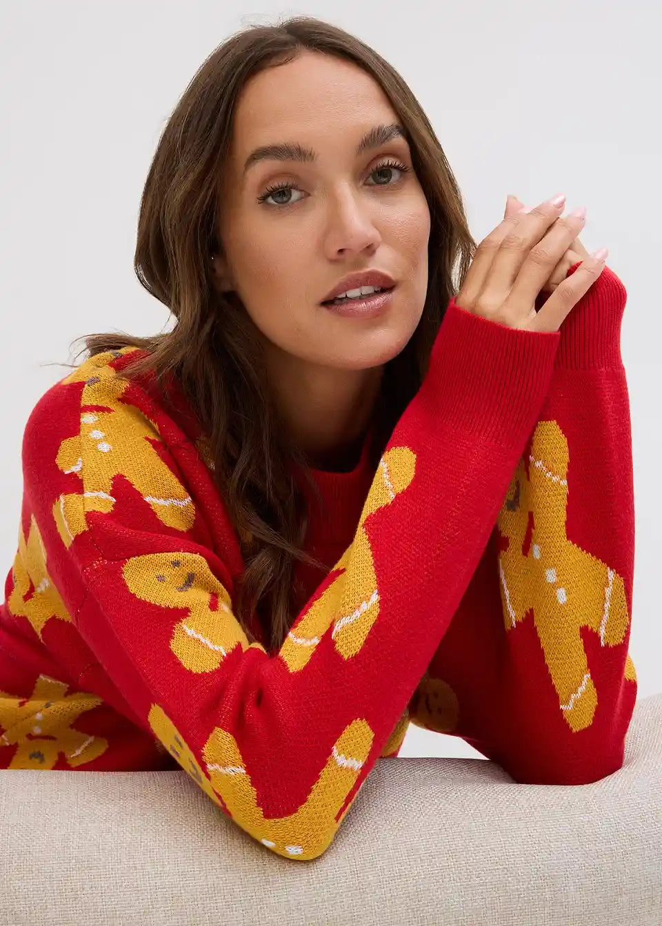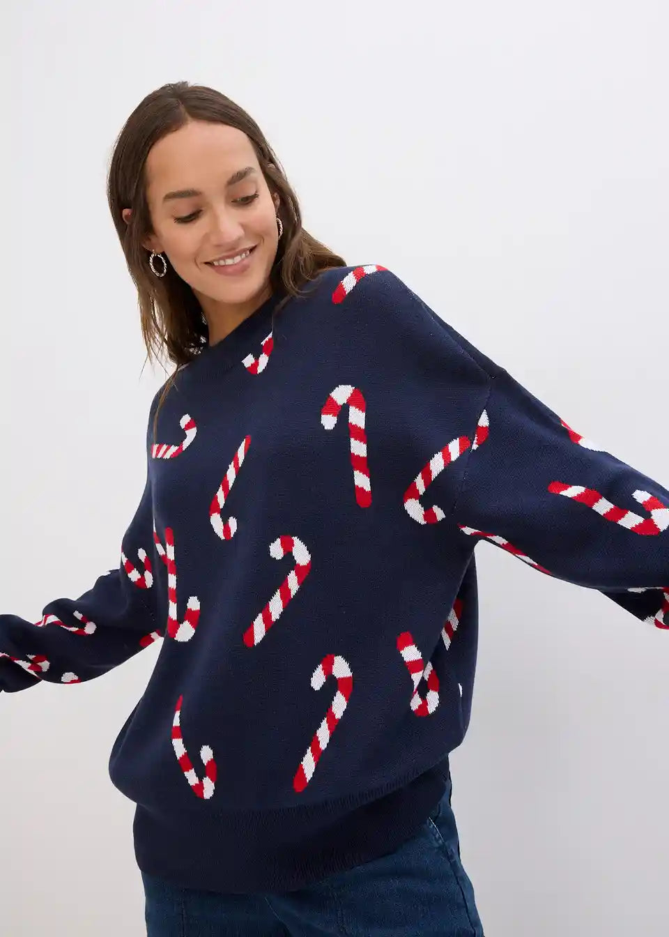 Božićni pulover s okruglim izrezom oversize kroja