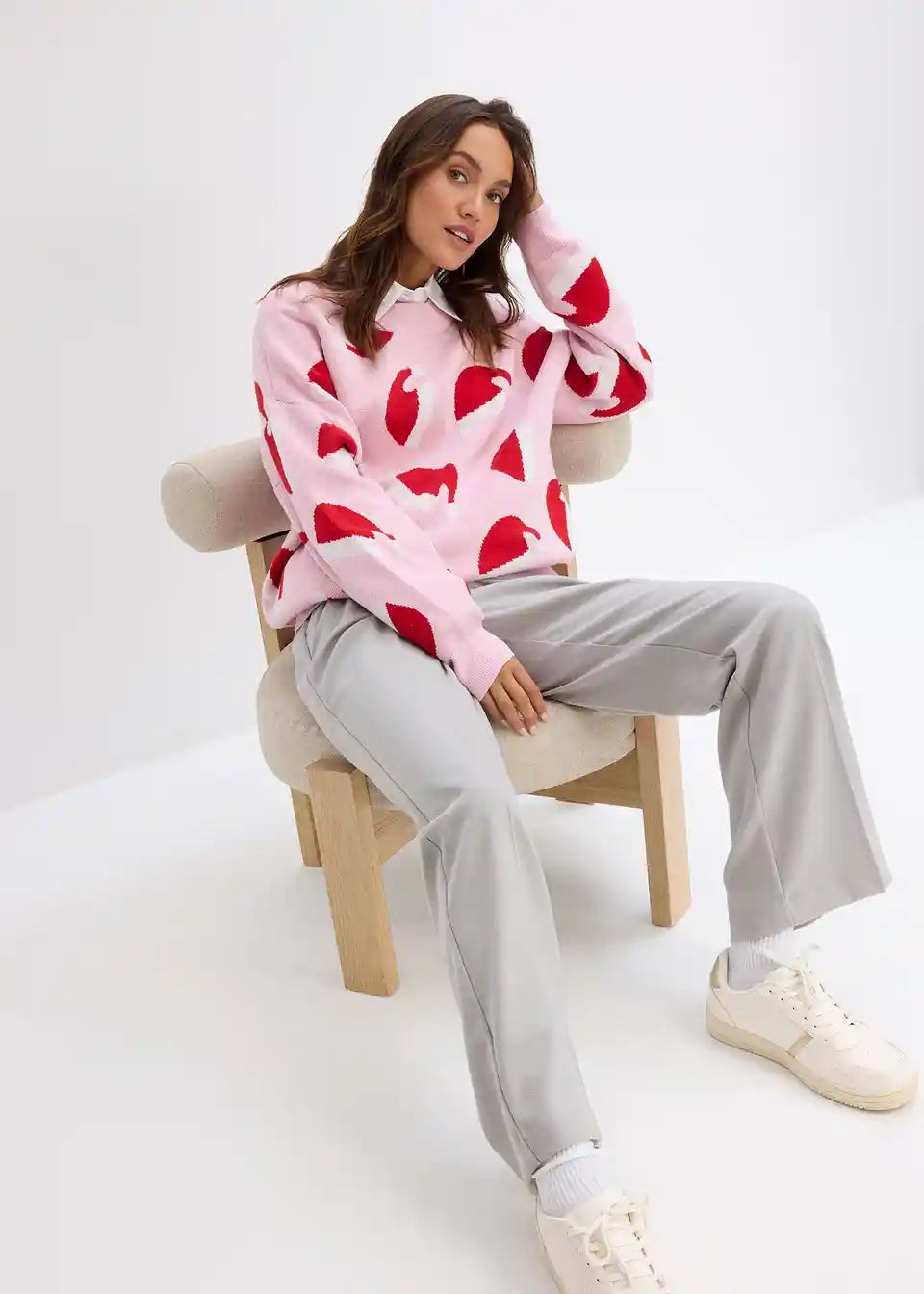 Široko krojeni pulover s okruglim izrezom i božićnim motivom