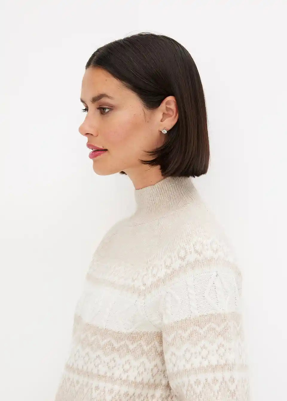 ženstveni Norveški pulover s uspravnim ovratnikom