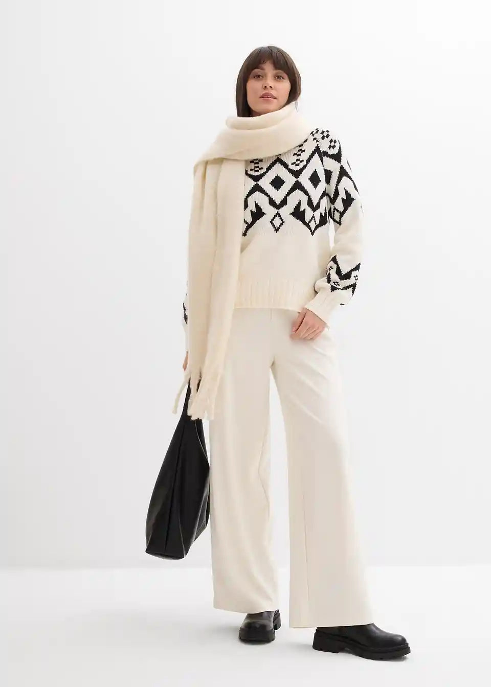 Moderan oversize norveški pulover u monokromatskom izgledu