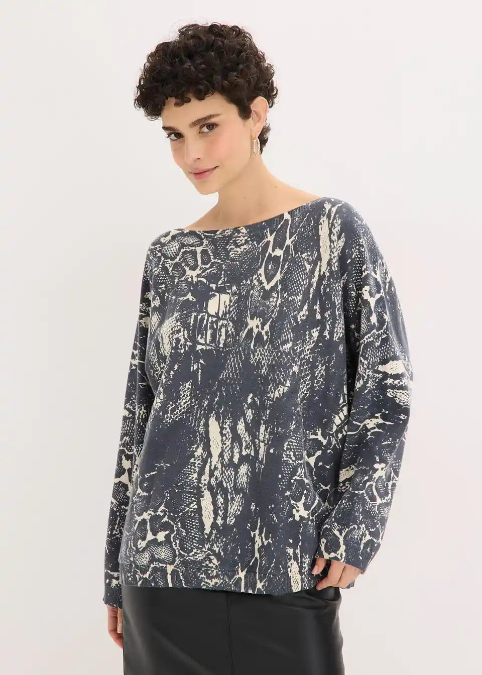 Pulover sa šišmiš rukavima sa zmijskim uzorkom